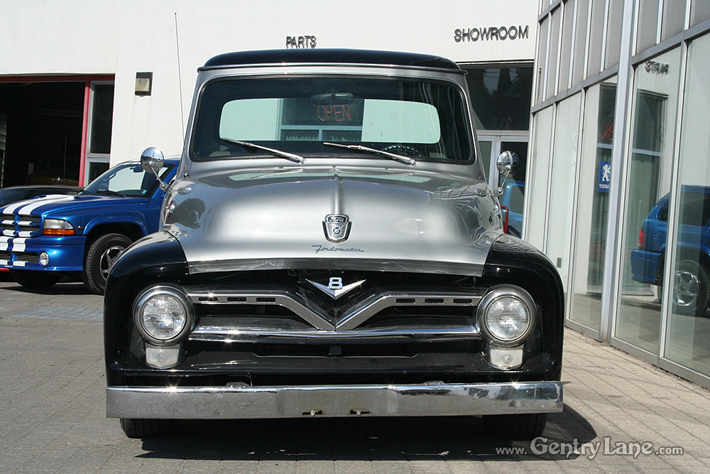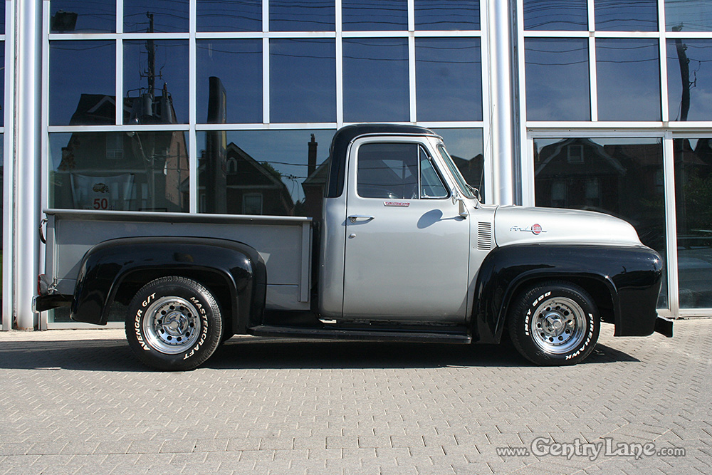 1955 Ford F100 Pickup HIGHLIGHTS New 390 CI Ford engine Automatic transmission 4,000 miles on engine Black/Silver Exterior Black/White interior New 2-barrel carburetor Cordova front end Disc brakes 9 inch rear end New tires