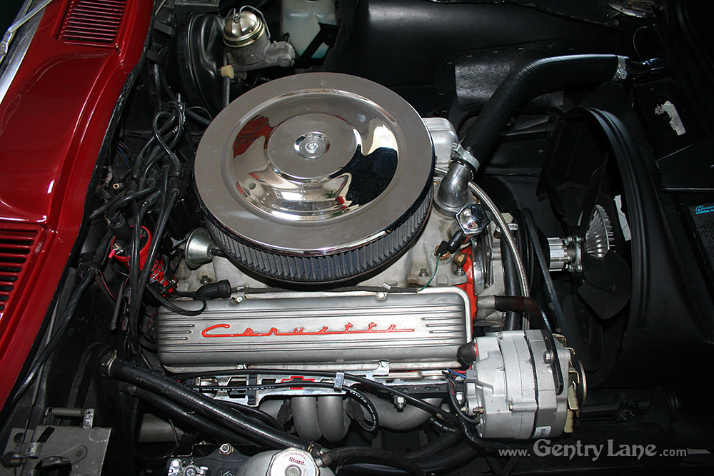 Beautifully restored 1964 Chevrolet Corvette convertible, Maroon with Black interior and Redline tires, in this case mounted on the finned aluminum Knock Off wheels also offered that year. This sharp-looking mid-year Corvette has been carefully modified under the hood as well, where its small block V-8 engine is fitted with a 4-barrel carburetor on an aluminum intake, tube headers with dual exhaust and a thermostatically controlled cooling fan. The car is also equipped with a Hurst-shifted 4-speed, power brakes and an AM radio.