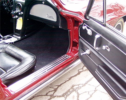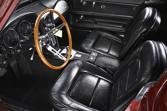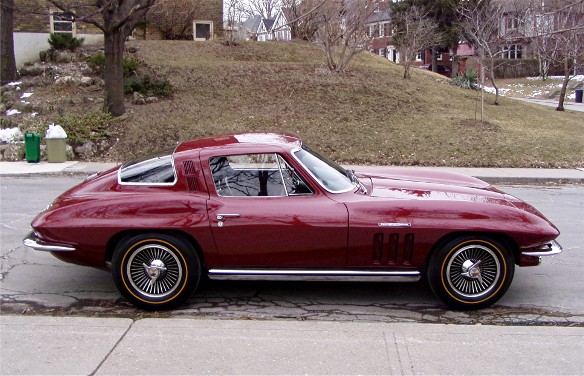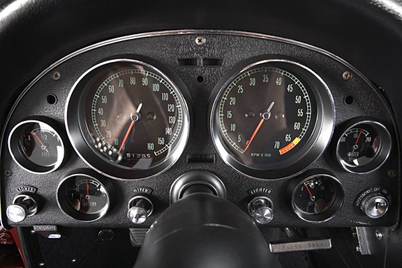 For 1965 Corvette made a few changes to the Sting Rays. The horizontal grill bars were changed to black, the hood vent depressions were removed and the new vertical exhaust louvers in the front fenders were now functional. On the interior Instrument gauges were restyled with flat black faces and seats were redesigned with slightly larger and more supportive cushioning.