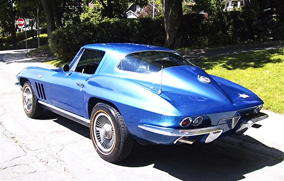 The exterior is Laguna Blue with Dark Blue vinyl interior and Aluminum Wheels. This vehicle is also equipped with power windows and power assisted brakes. On the exterior the rear window is craked on the left corner(see picture). Vehicle runs and drives extremely well. This classic American Coupe is extremely solid and fun to drive. One of the most collectable of all Corvettes.