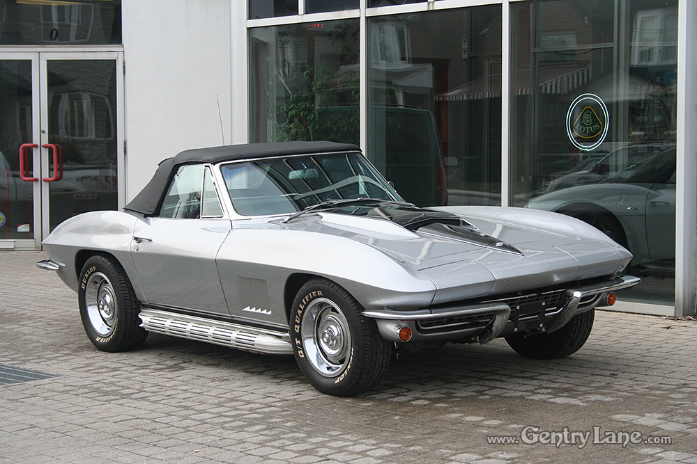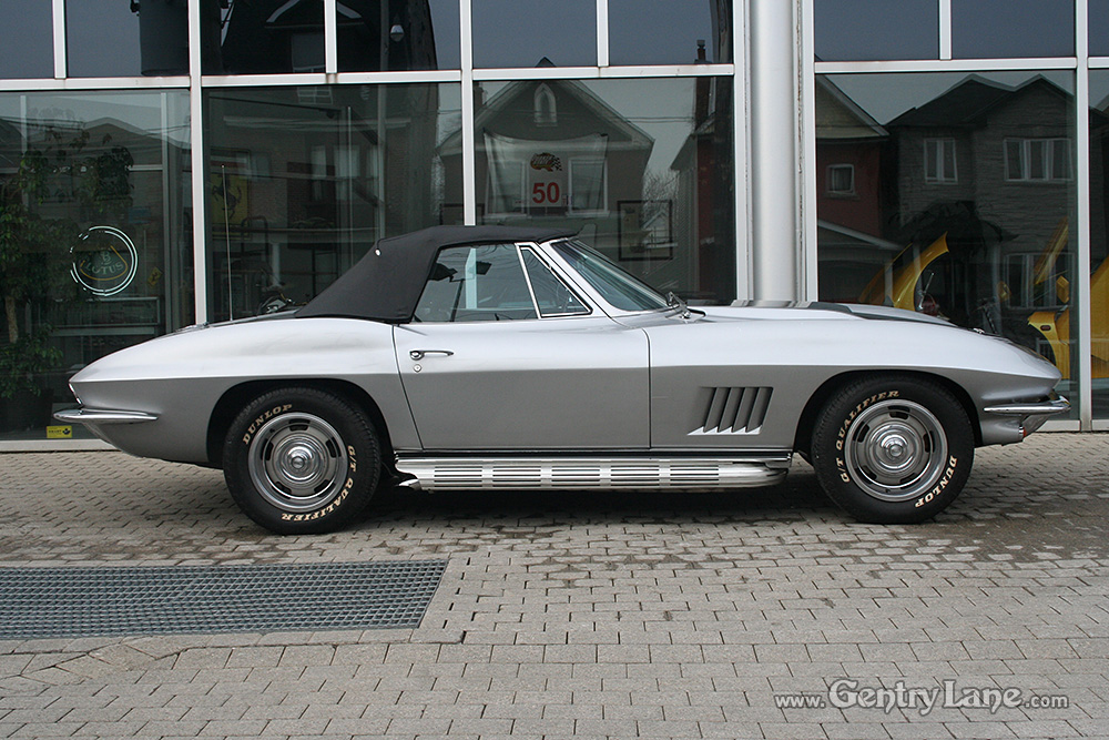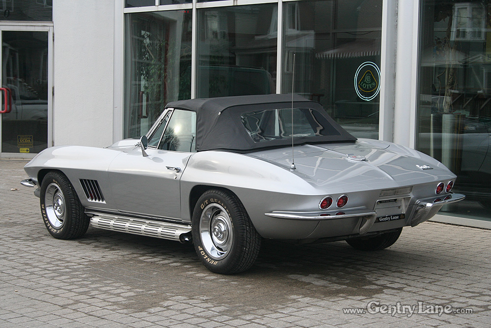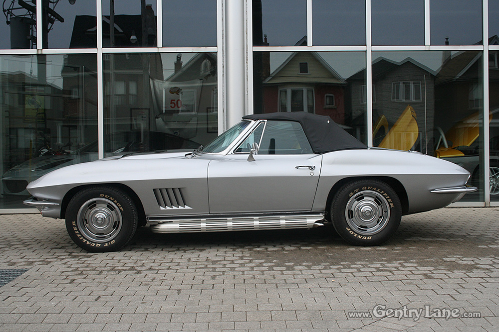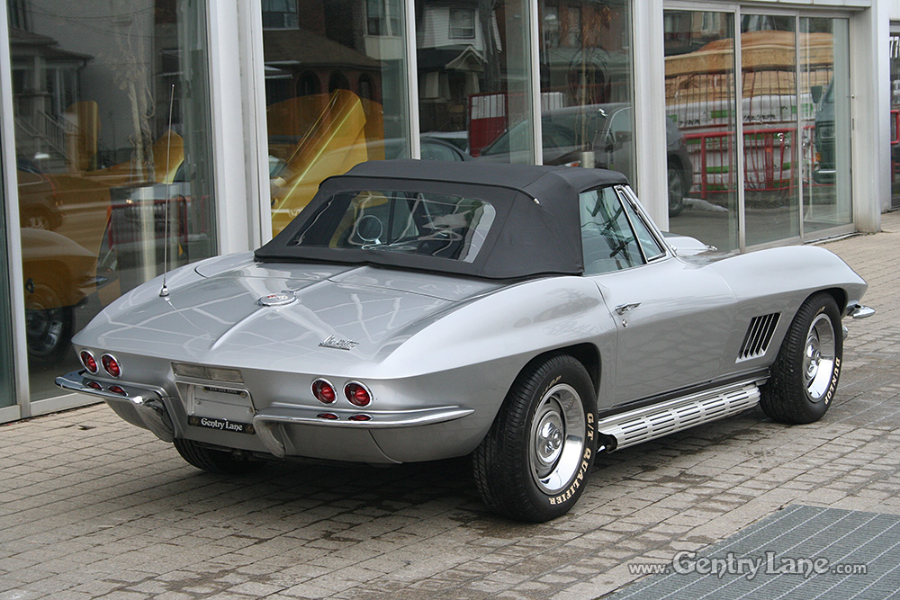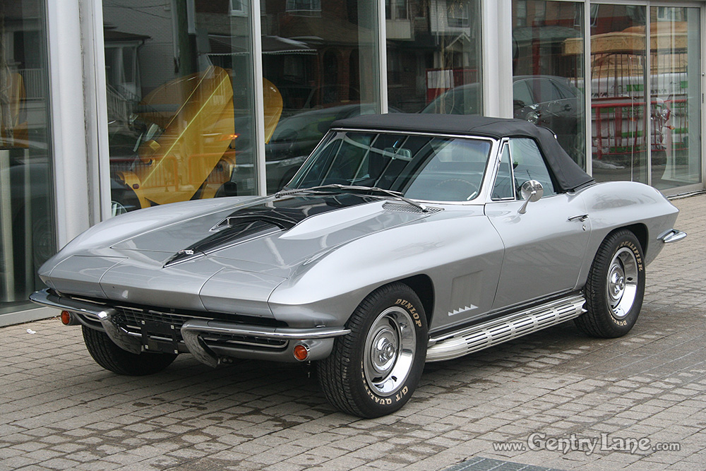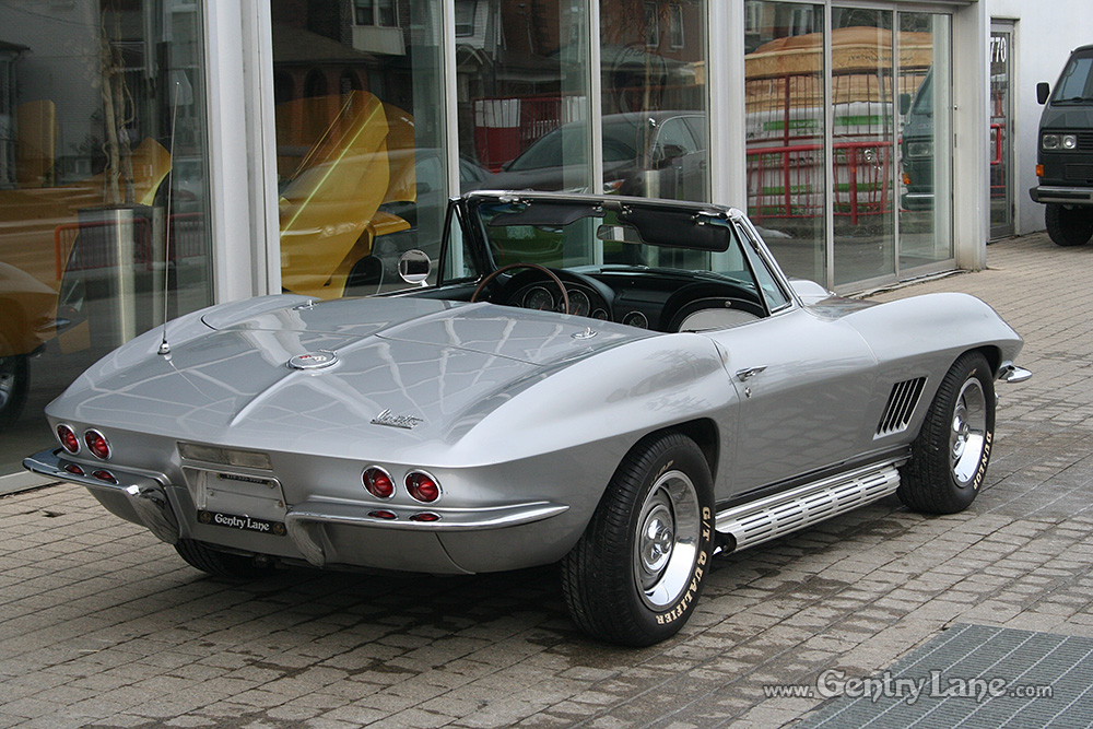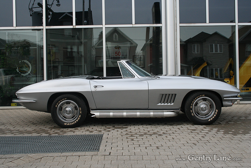 1967 Chevrolet Corvette Convertible. The exterior is Silver with a Black leather interior. Black soft top. Automatic transmission. 77,931 miles. V8, 327-300hp. RWD. # matching. Radio.