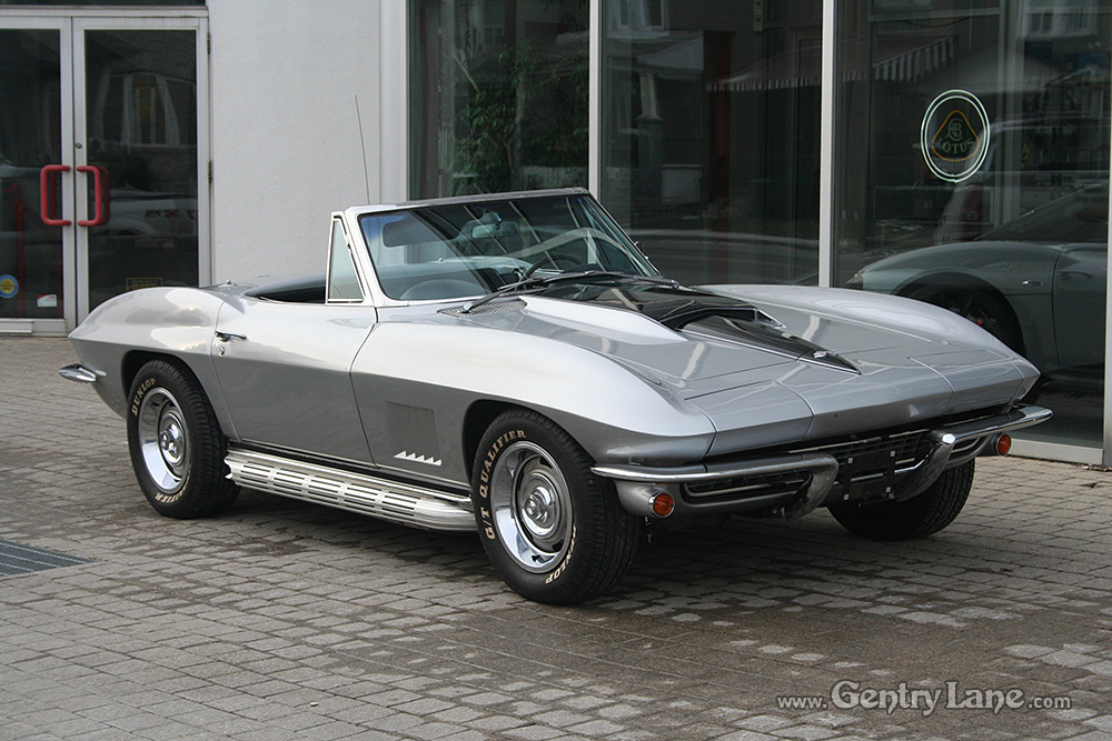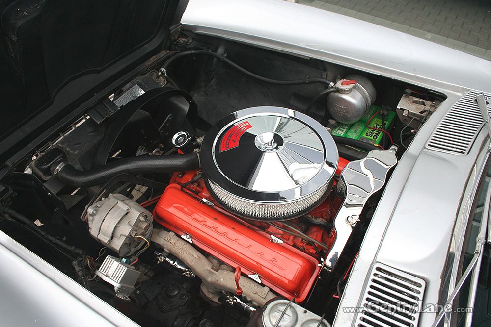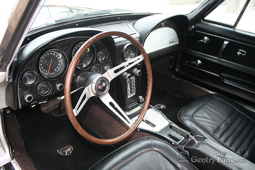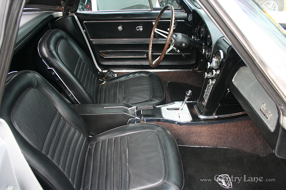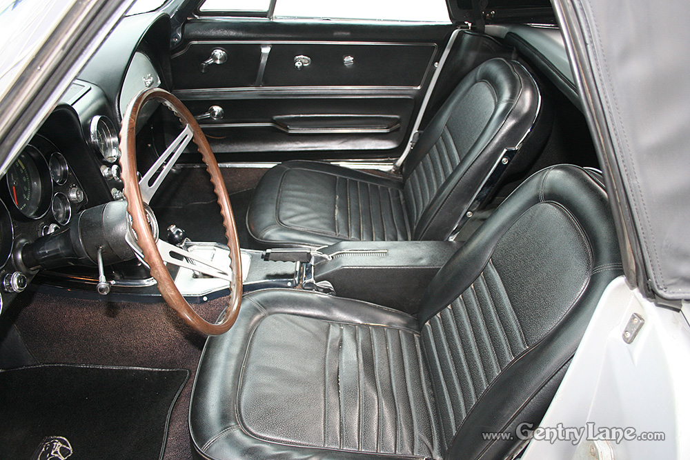 Some consider the ’67 the best looking Vette of all time. It’s styling, although basically the same, was cleaner and it had five functional front fender louvers. Minor changes were made to the interior. The most noticable was the relocation of the parking brake from under the dash to the center console. This ’67 comes equiped with – rally wheels, 4-wheel disc brake, odometer, clock, carpeting, wheel trim rings, tachometer, and all vinyl, foam cushioned bucket seats.