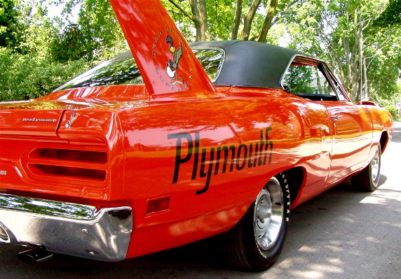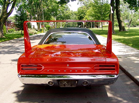 The Superbird was based on the Plymouth Road Runner and the nose, airfoil, and basic sheet metal was different between the Daytona and Superbird. The special nose added 19 inches to the overall length (the Daytona’s was 18 inches), and the trunk spoiler was more angled and higher than the Daytonas. On both models, the spoiler was two feet high so that the owner could open the trunk. Although it created quite an impression on the street, the wing did almost no aerodynamic good under 90 mph.