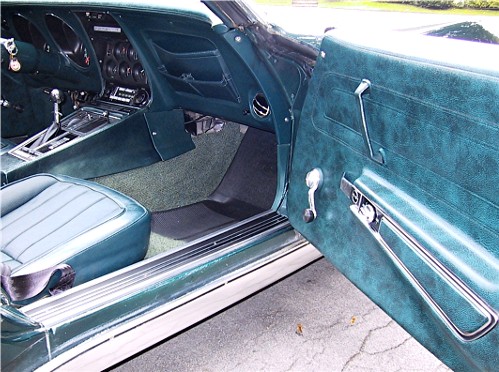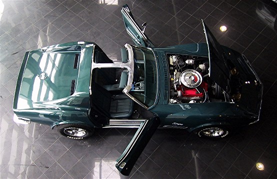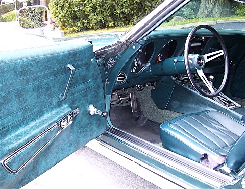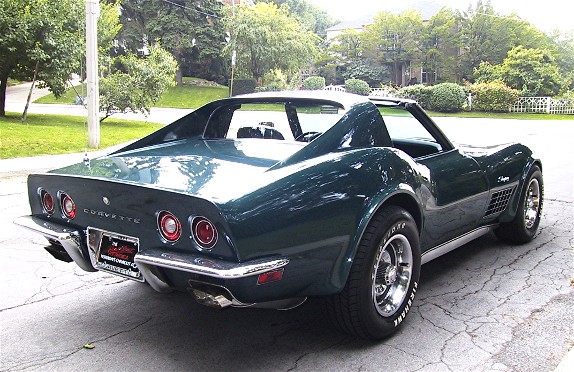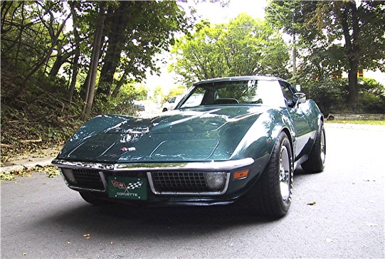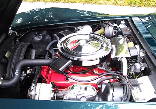 Fitted to this car; a NUMBERS MATCHING 350/270 HP V-8 Turbo Fire engine. The transmission is the factory optional 4 speed manual. The exterior is Brands Hatch Green with a Dark Green vinyl interior. Factory options include Pwr. Steering, Pwr. Brakes and AM/FM Radio. Car comes complete with the original Corvette Gas Tank Sticker and full set of receipts for parts and repairs. A Solid example of a great American Classic Muscle Car. An excellent driver!