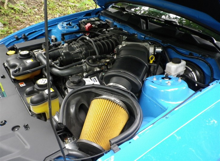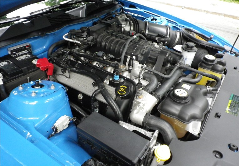 When it came to the powertrain, Ford capitalized on the advancements made with the 40th anniversary edition Shelby GT500KR. The output of the 2010 Shelby GT500 is matches the 540 horsepower and 510 lb-ft of torque generated by the KR. The 5.4-liter supercharged V-8 will still be channeled through a muscle-car-era solid rear axle, revised ignition and throttle calibration and a cold-air intake. The new intake uses a conical filter and a front grille snorkel.