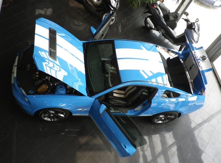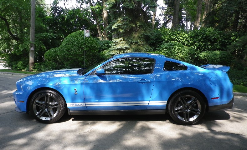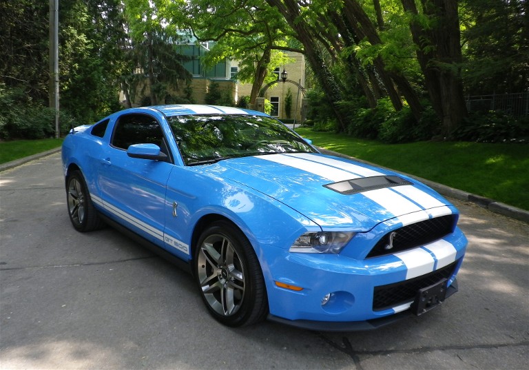 Stunning High-Performance Grabber Blue 2010 Ford Mustang Shelby GT500. Standard equipment includes: Air conditioning, antilock brakes with four-wheel discs, genuine aluminum finish panels, classic white shift knob, remote keyless entry, 19-inch Goodyear F1 Supercar tires and forged aluminum wheels, traction control, and dual stage front air bags, side-impact air bags and Ford’s Personal Safety System. Options include: AdvanceTrac stability control system, Shaker Audio System, dual-zone climate controls, SYNC powered by Microsoft, Ambient Lighting System with MyColor and Vehicle Health Report (VHR). This Shelby GT500 is in stunning condition. Balance of factory warranty. Like new only with only 10,500 Original Km’s. Gorgeous Example!