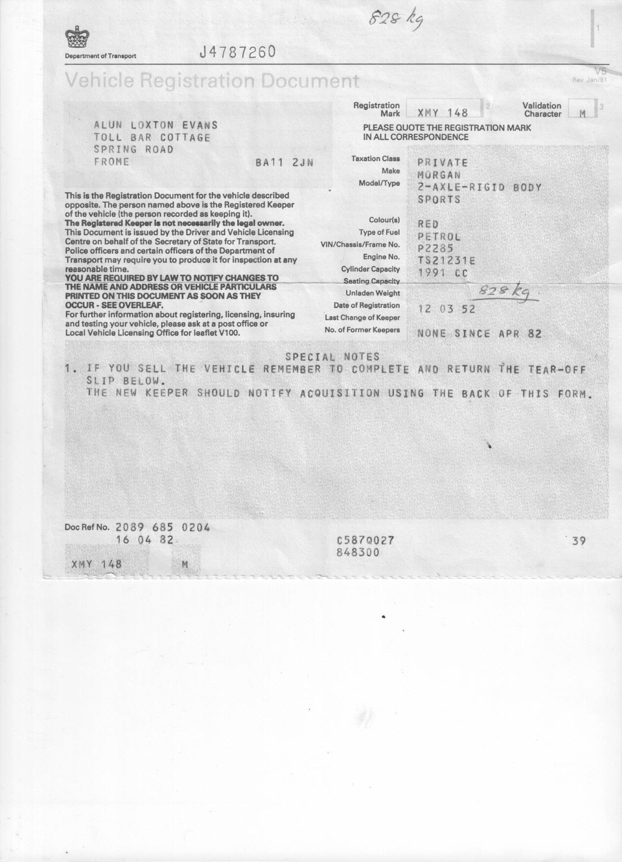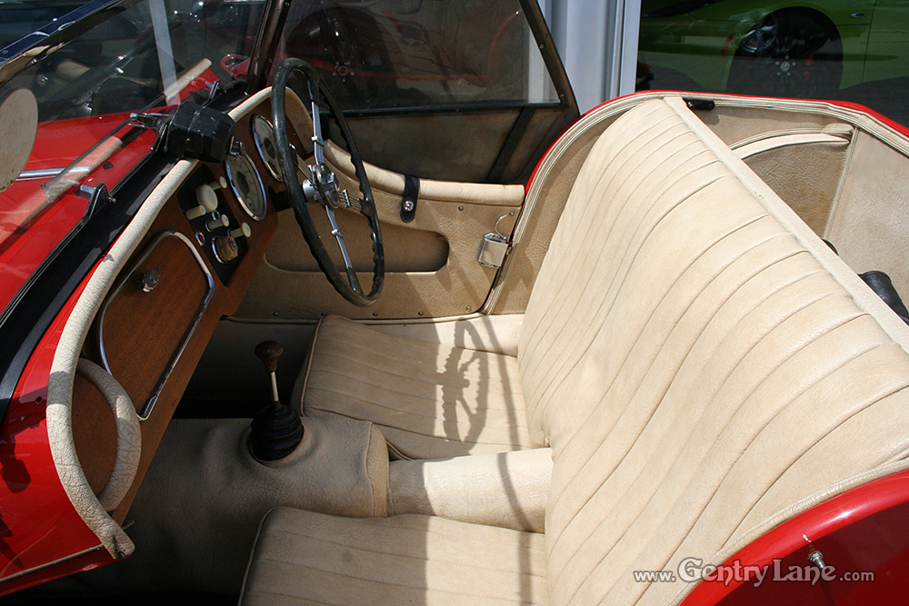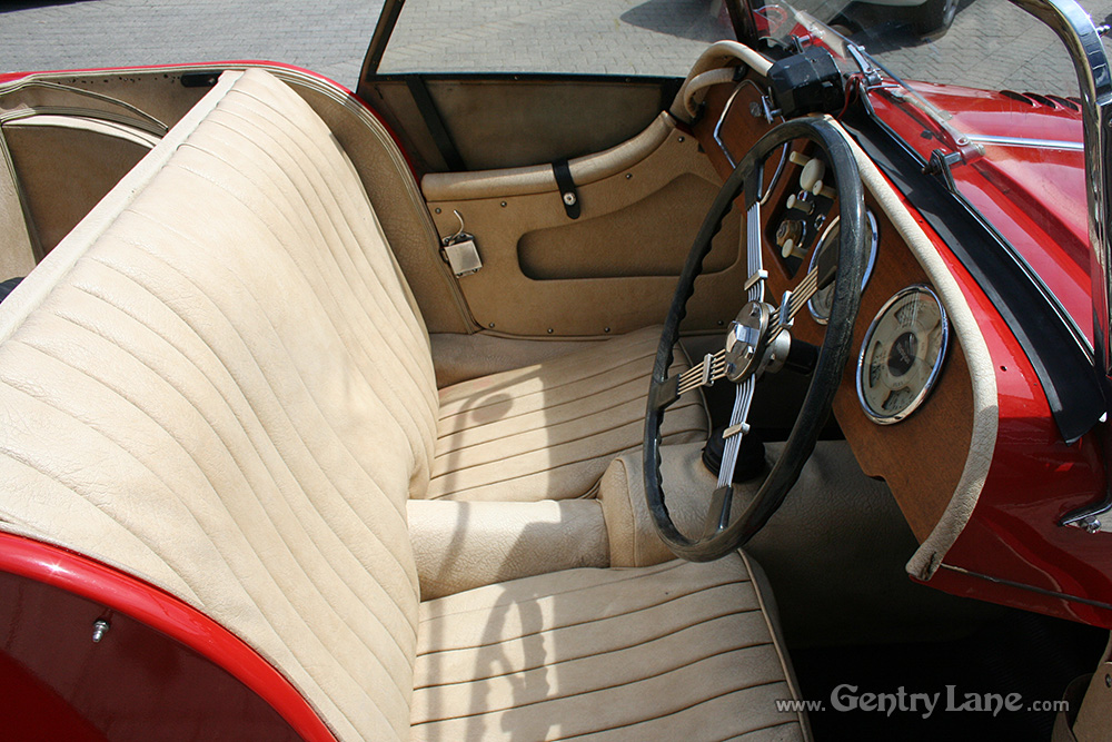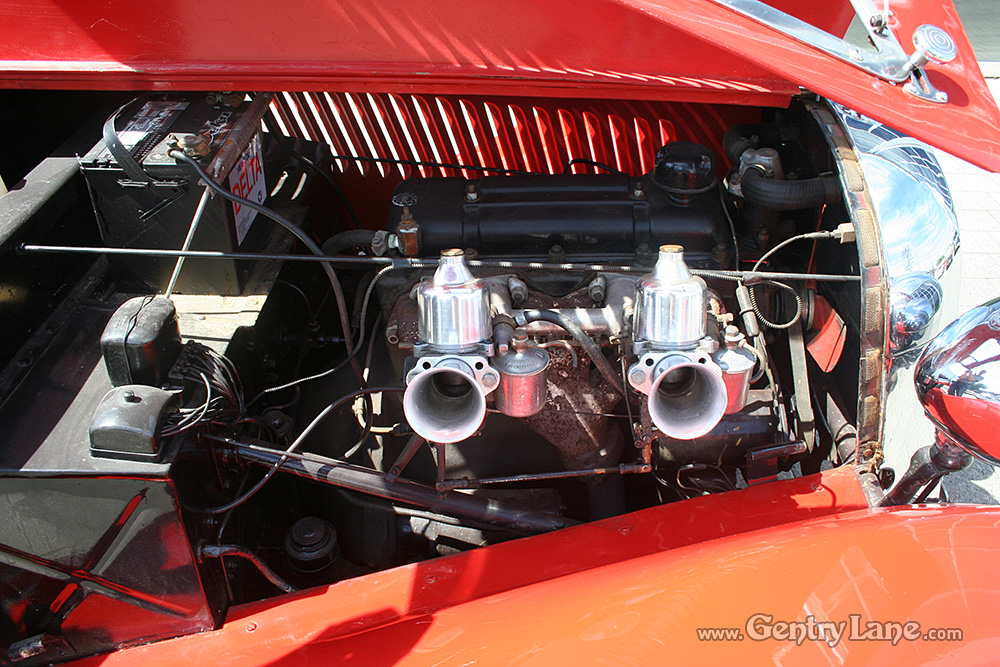 1952 Morgan Plus 4. The outside is Red with a Beige leather interior. Manual transmission with an Inline four cylinder engine. 1991 cc. Right hand drive. Convertible with a black soft top. Duel Carburetors. Flat grill. Banjo steering wheel. Twin rear mount spares. Genuine British roadster experience that is rapidly increasing in value.