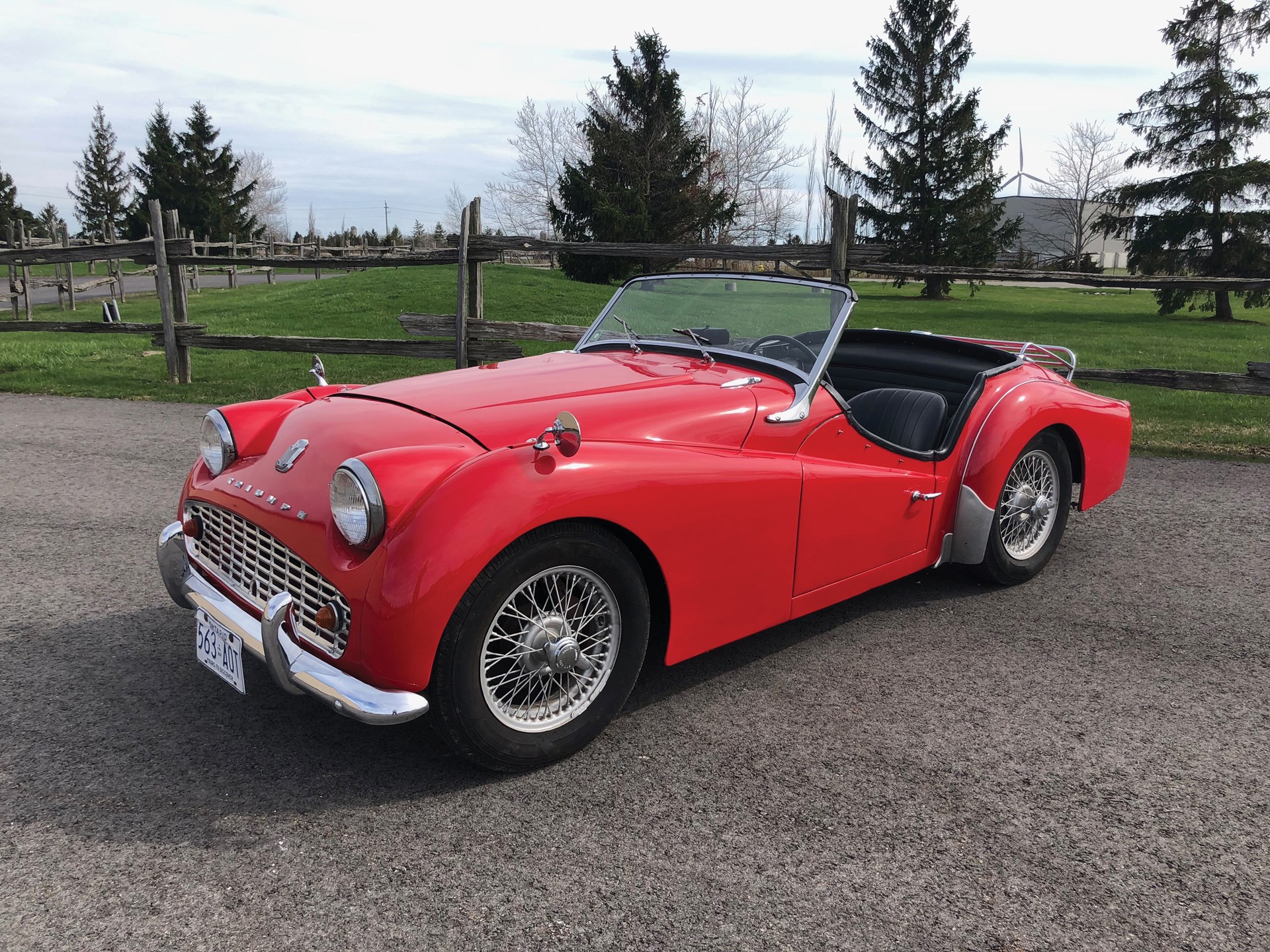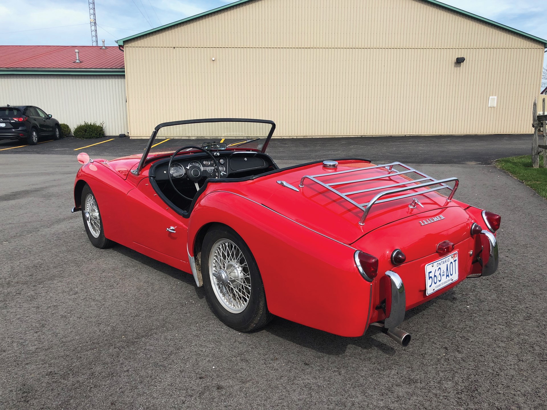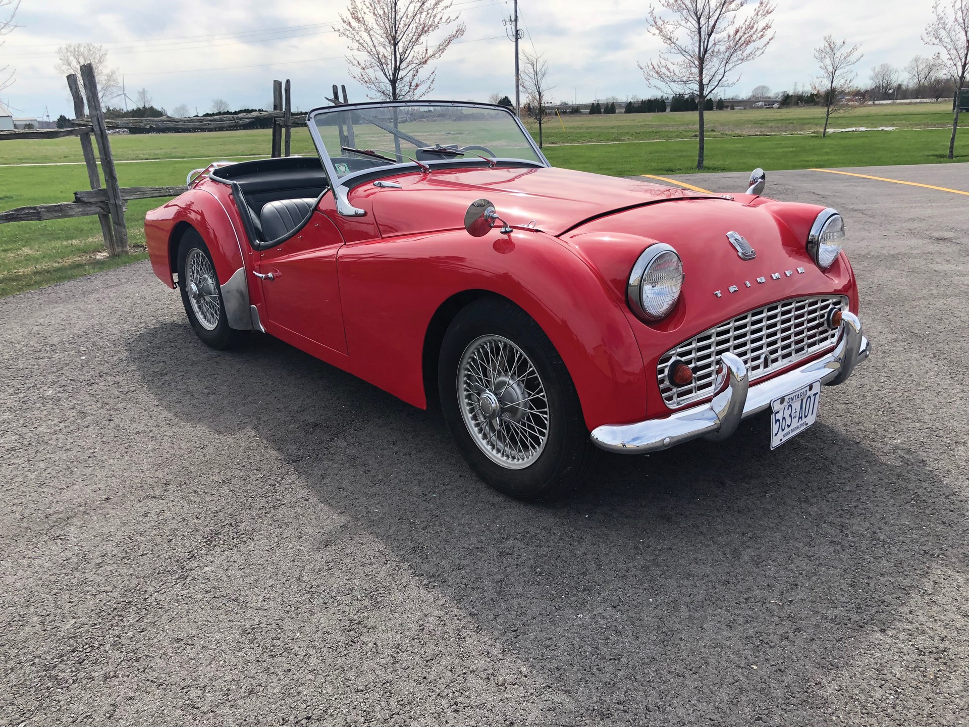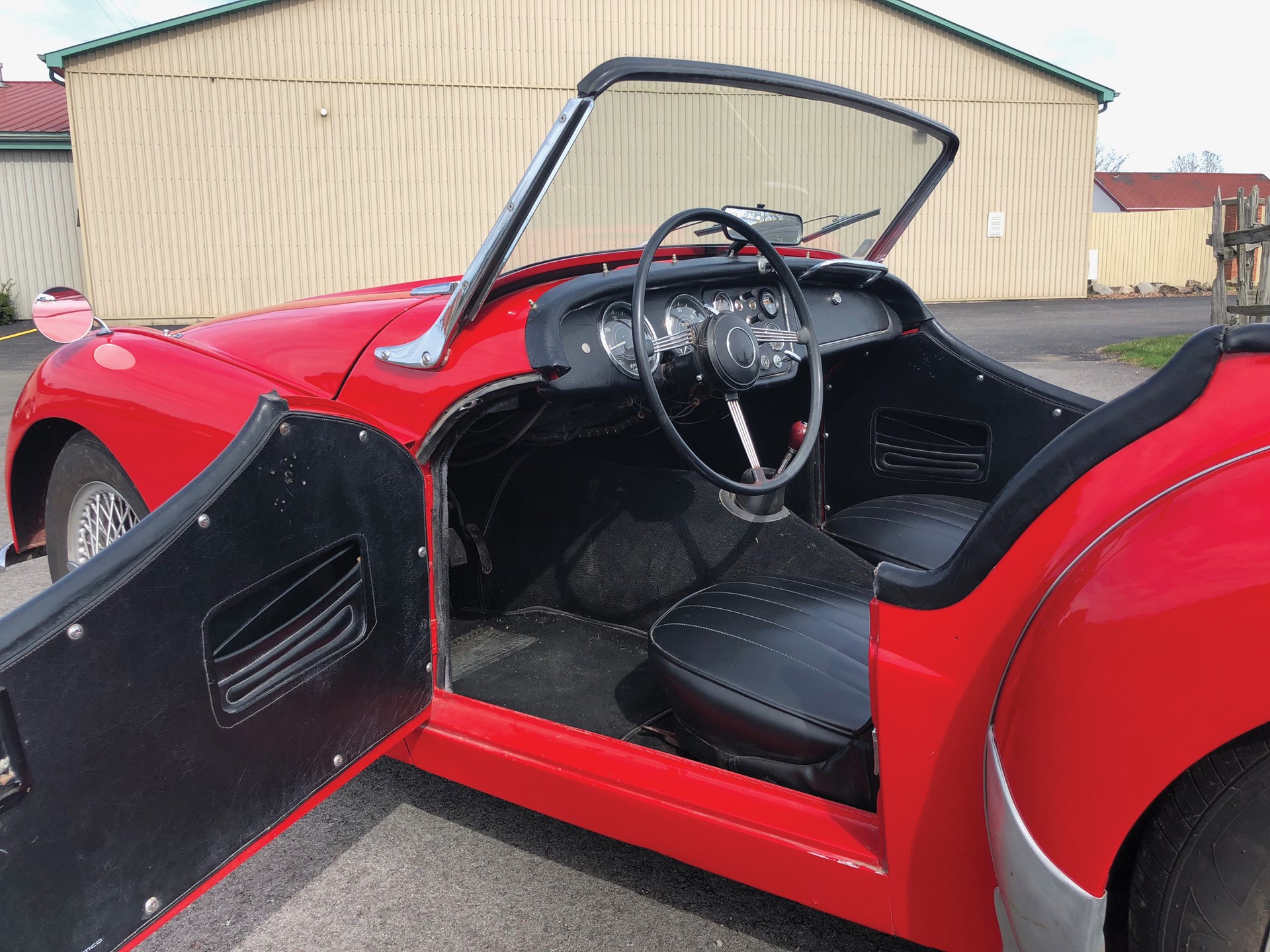 1958 Triumph TR3A 2.0-liter inline four-cylinder engine with dual S.U. carburetors Four-speed manual transmission Trunk-mounted luggage rack Knock-off wire wheels Wonderful driver quality example Red exterior with a Black interior