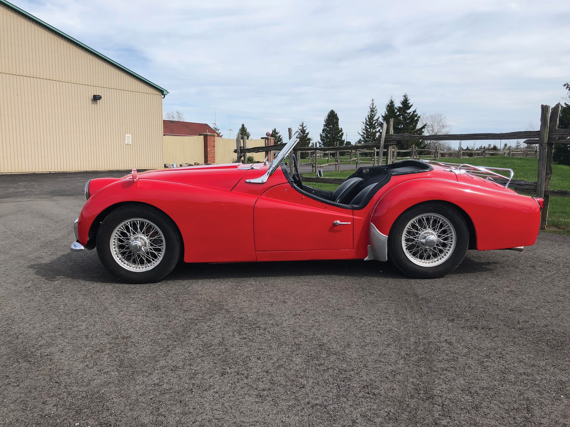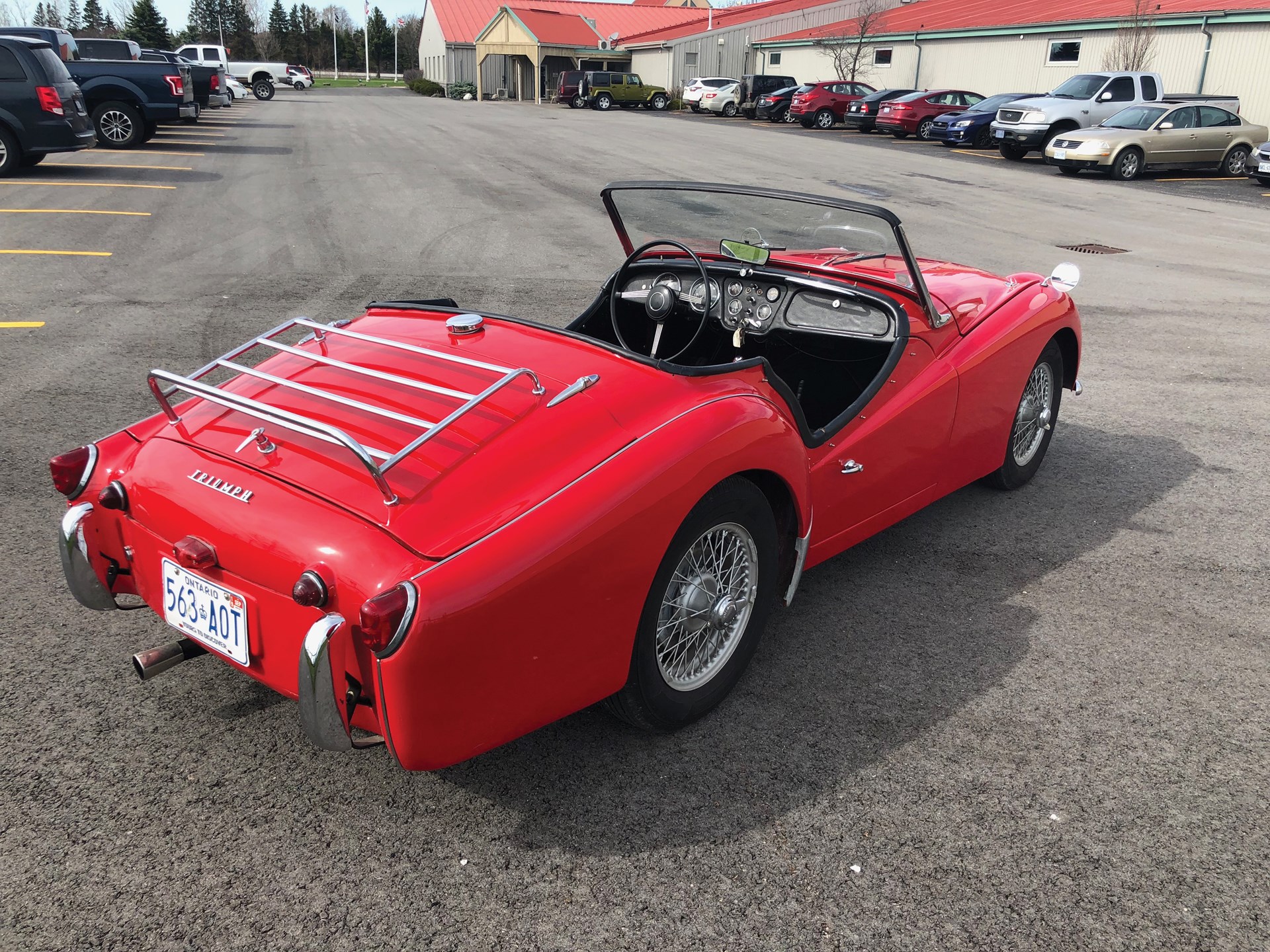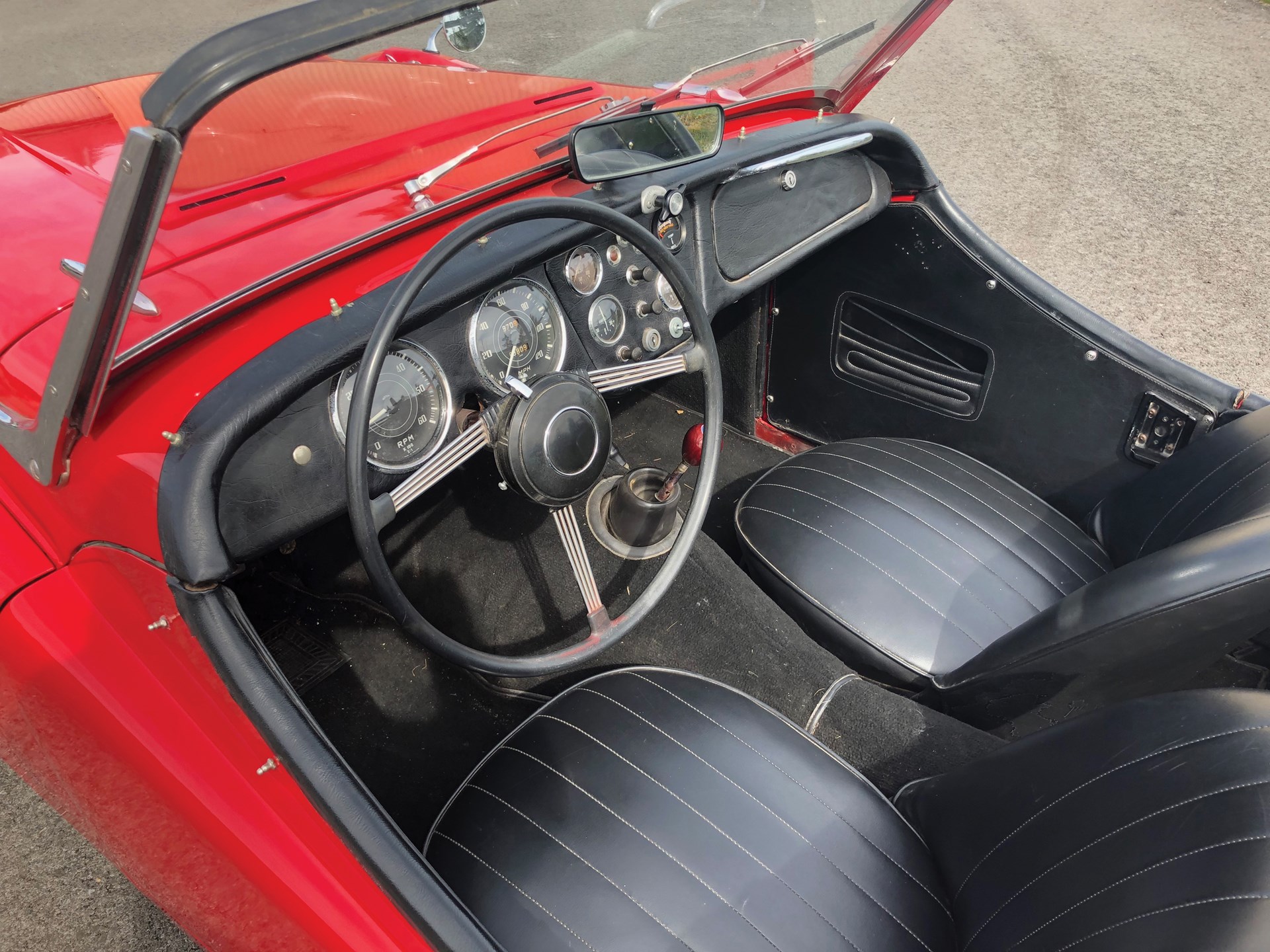 1958 Triumph TR3A 2.0-liter inline four-cylinder engine with dual S.U. carburetors Four-speed manual transmission Trunk-mounted luggage rack Knock-off wire wheels Wonderful driver quality example Red exterior with a Black interior
