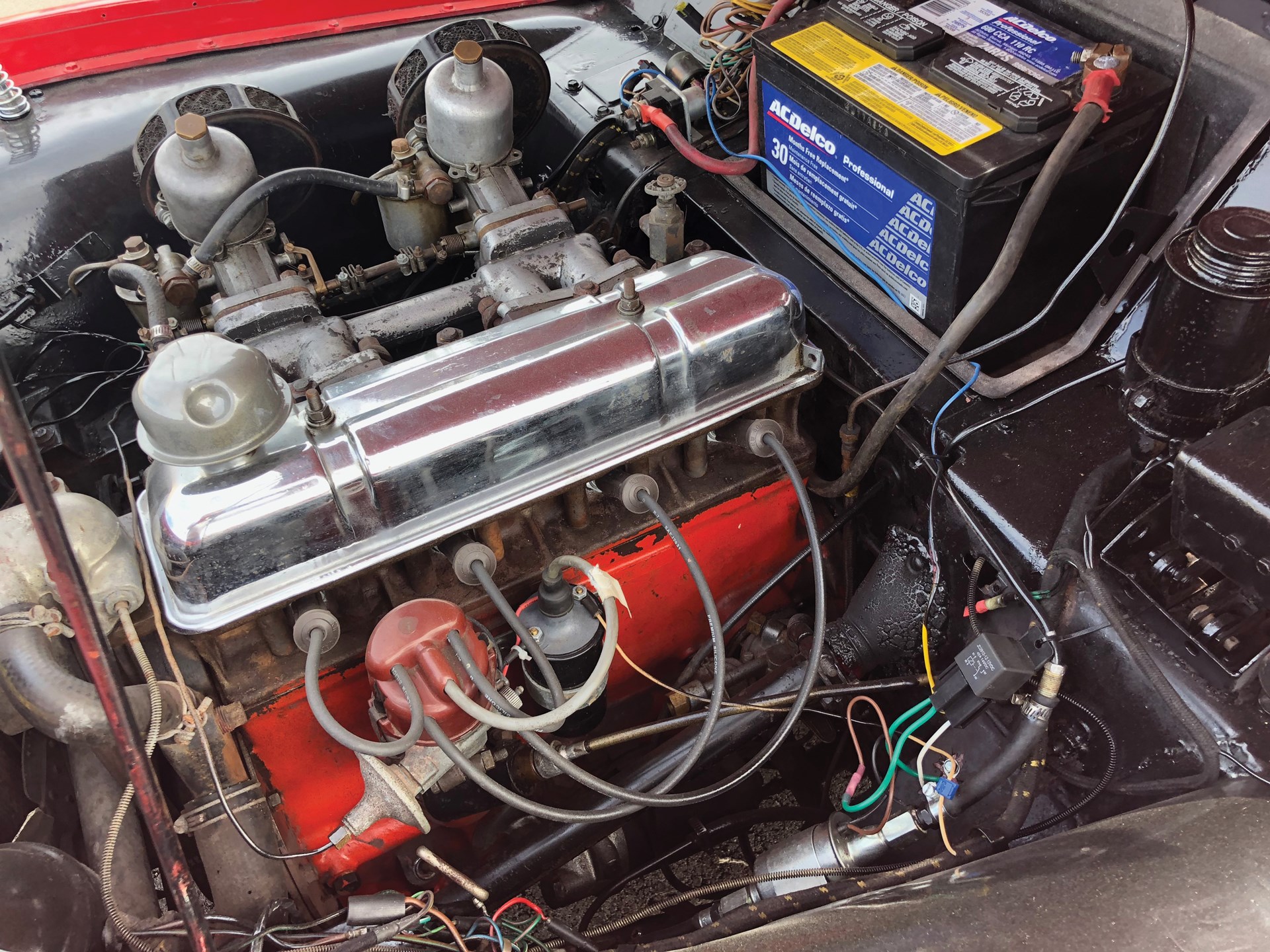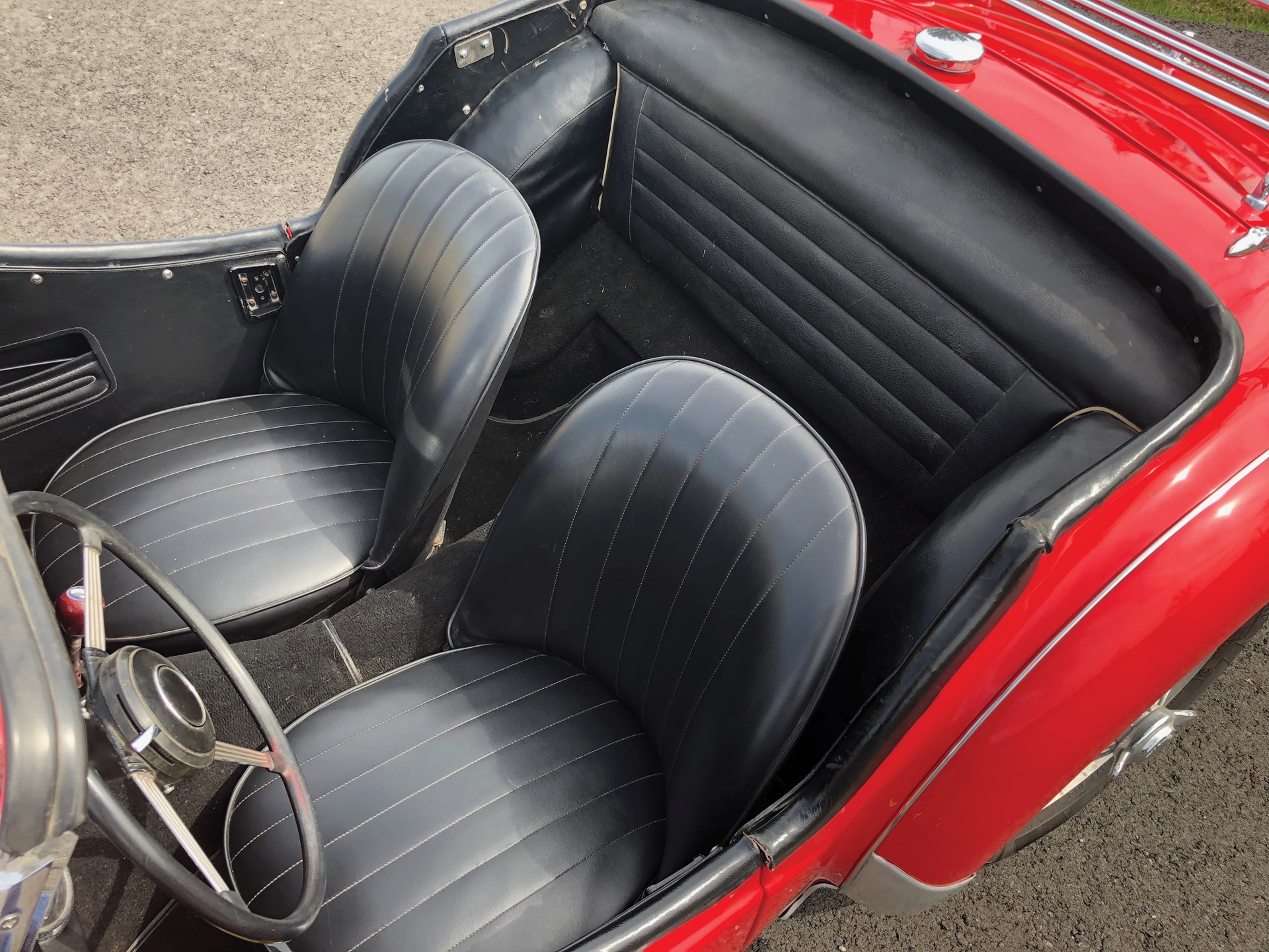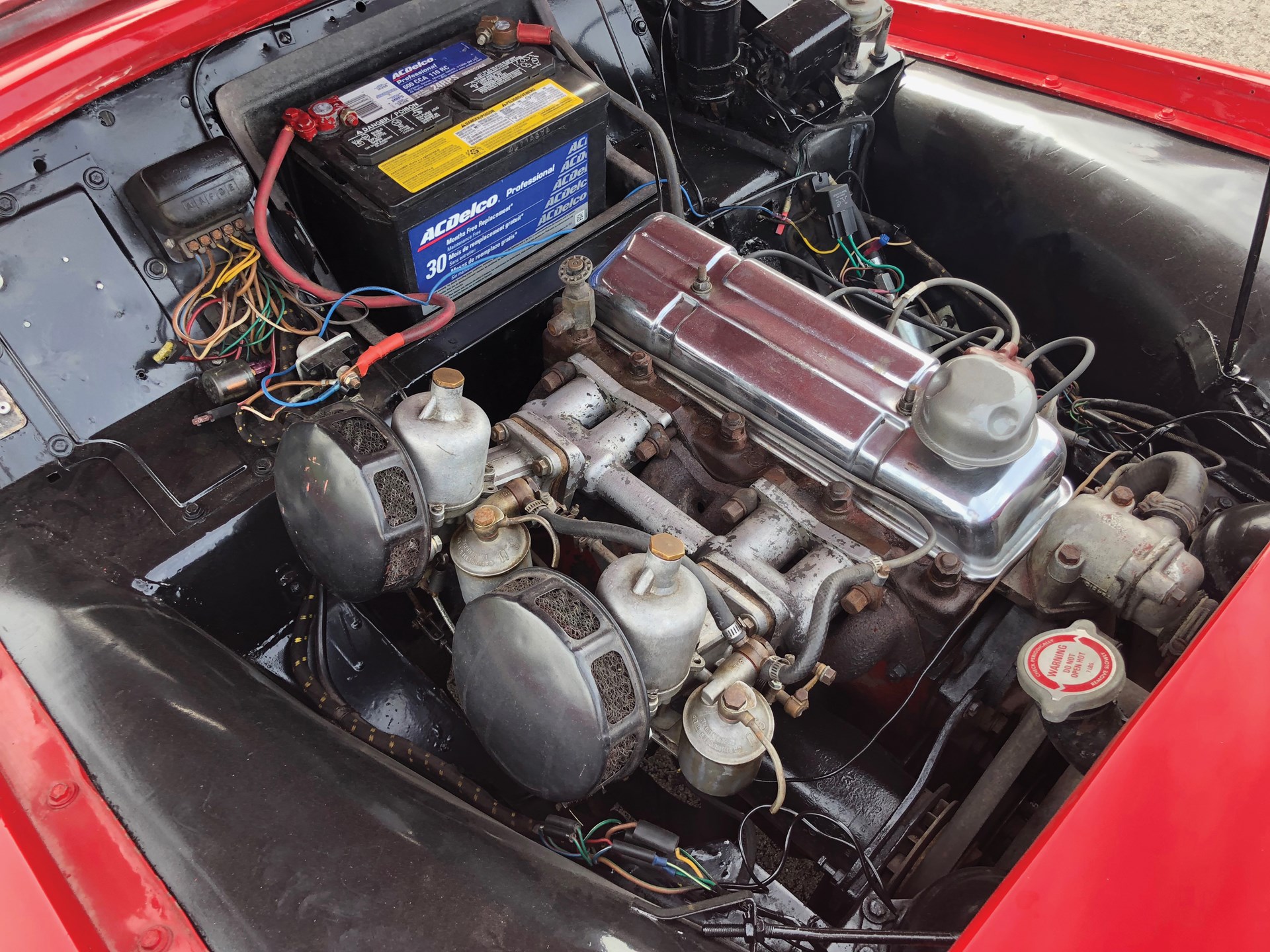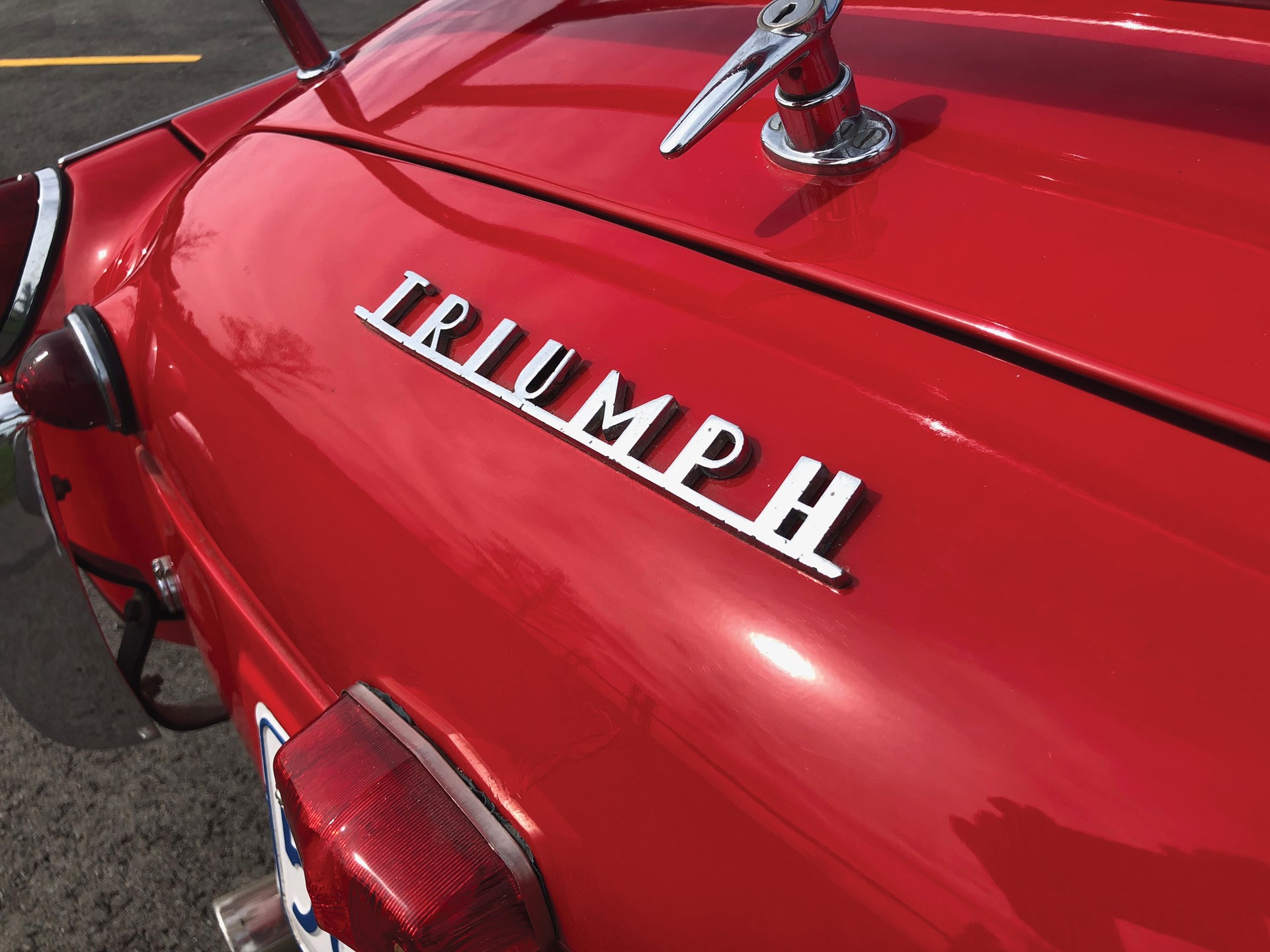 1958 Triumph TR3A 2.0-liter inline four-cylinder engine with dual S.U. carburetors Four-speed manual transmission Trunk-mounted luggage rack Knock-off wire wheels Wonderful driver quality example Red exterior with a Black interior