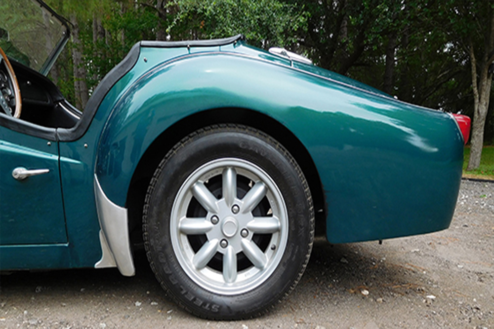 Triumph’s TR3 was the first volume-production sports car with standard front wheel disc brakes and this continued on with the TR3A. The car was well known for its superior braking ability and combining this with excellent engineering and design of the suspension, springs, telescopic dampers, and more led this platform to be an autocross favorite.