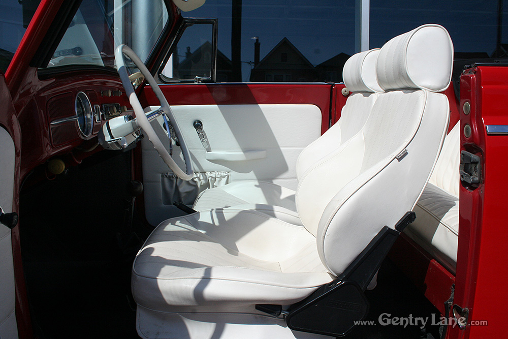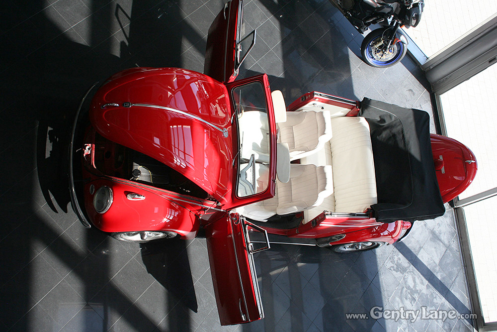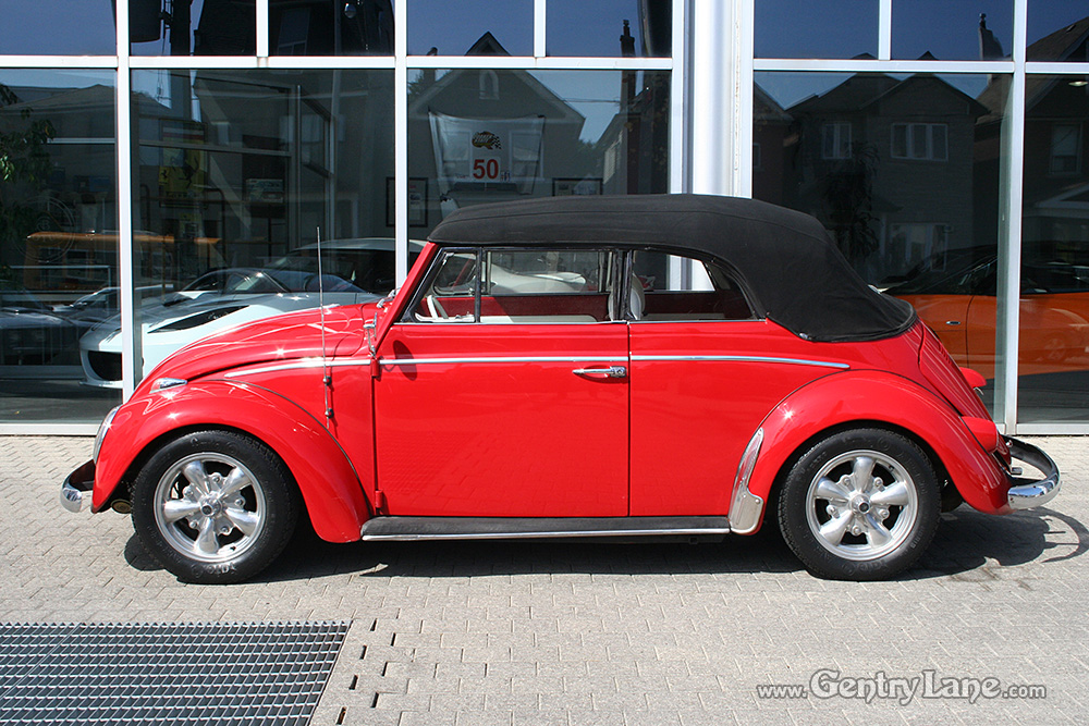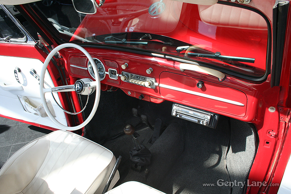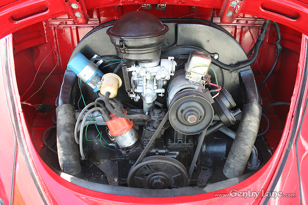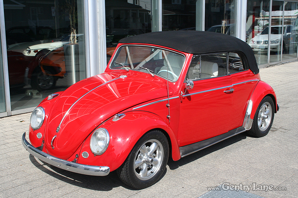 This nice Beetle is finished in red and is powered by a four-cylinder engine running through a four-speed manual transmission. 53455 miles. The factory in-dash radio remains in place however a modern AM/FM radio and CD player has been mounted under the dash. It also has aftermarket wheels.