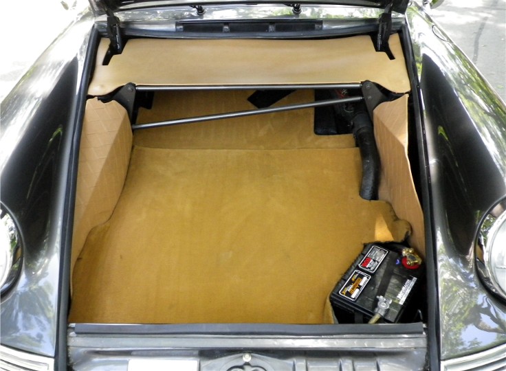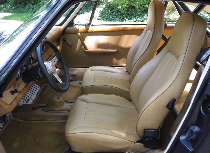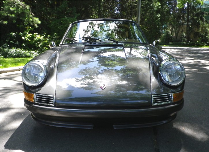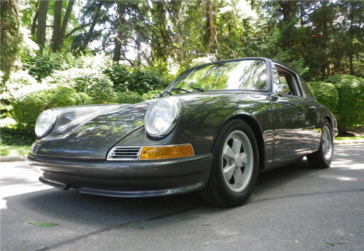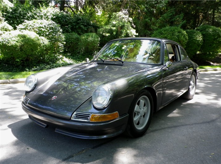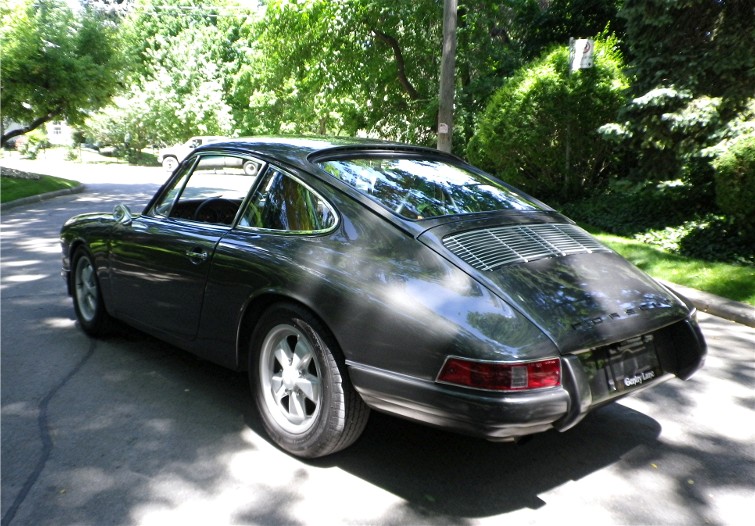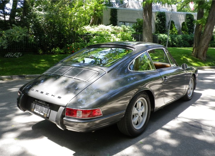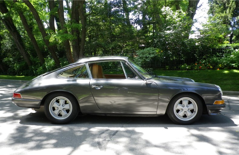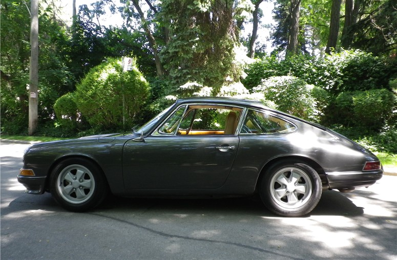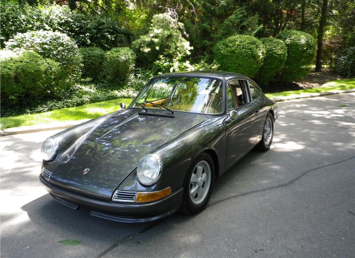This 1967 Porsche 912 Coupe was restored using the best of everything available. It is fitted with a Performance fuel-injected 2.1 litre 4-cyl. with programmable ECU, producing 150HP installed by Eurowerks. The transmission is a 901 5-speed with Wevo shifter, custom ceramic-coated SS exhaust, MSD Ignition, Weltmeister sway bar and bump steer kit, 930 torsion bars, Wevo bushings, Bilstein Suspension, SCCA-legal roll cage, and all new brake system with braided SS lines. The exterior and metal interior trim are clad in Slate Grey complemented by Valtekz interior finished in Chameleon – Khaki and Tumbled Steer – Khaki. Custom Nardi Steering Wheel, Gauges by Palo Alto. and 15” powder-coated Fuchs. This Stunning example was completed at a cost of $75,000 US!