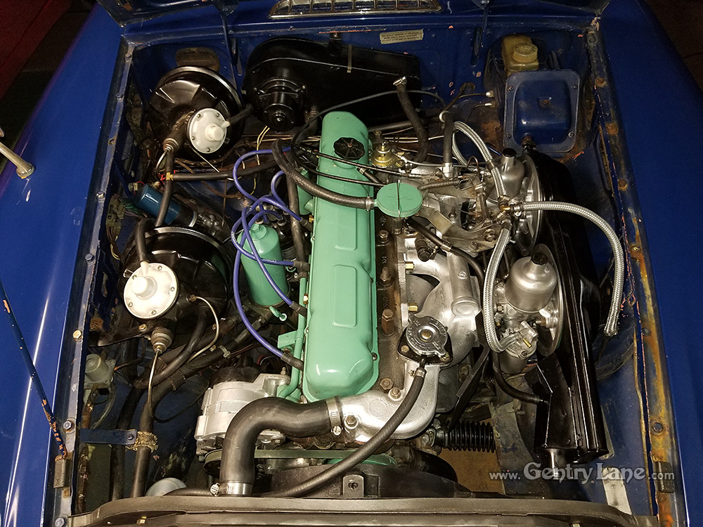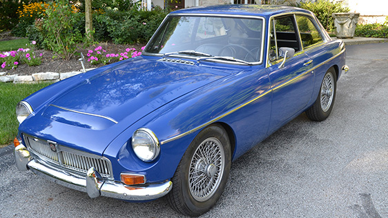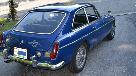 1968 MG C GT. The exterior is Blue with a Black interior. 145 hp, 2.9-liter straight six-cylinder engine. Borg Warner BW35, three-speed automatic transmission. Reported to be one of only 434 automatics for the U.S. market. Same family ownership for 24 years. Clear brightwork and MOSS wire wheels. Serviced by Spitzer of Indianapolis in 2015 – work included radiator, brakes, oil gasket, booster, pumps, and hose servo. Original keys and MG Austin Passport service book with car ID plate.