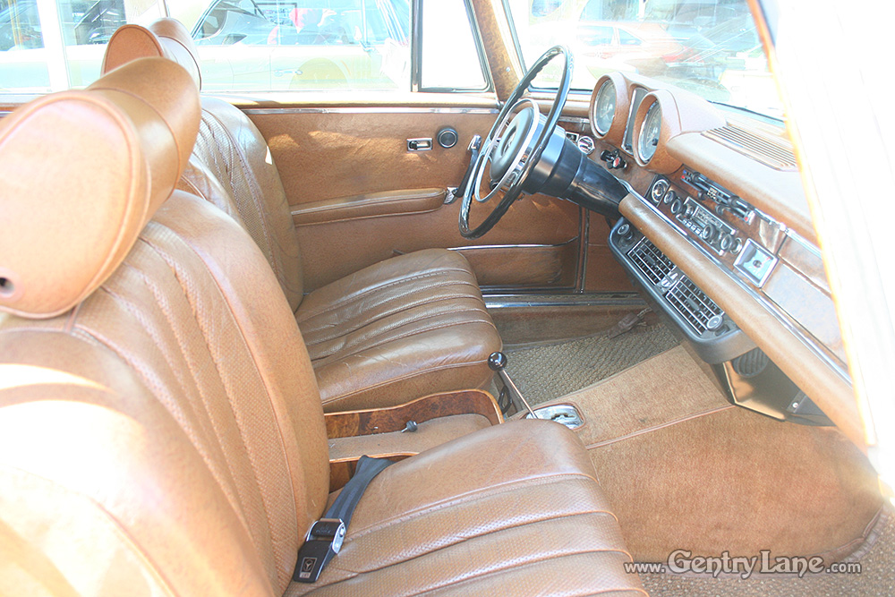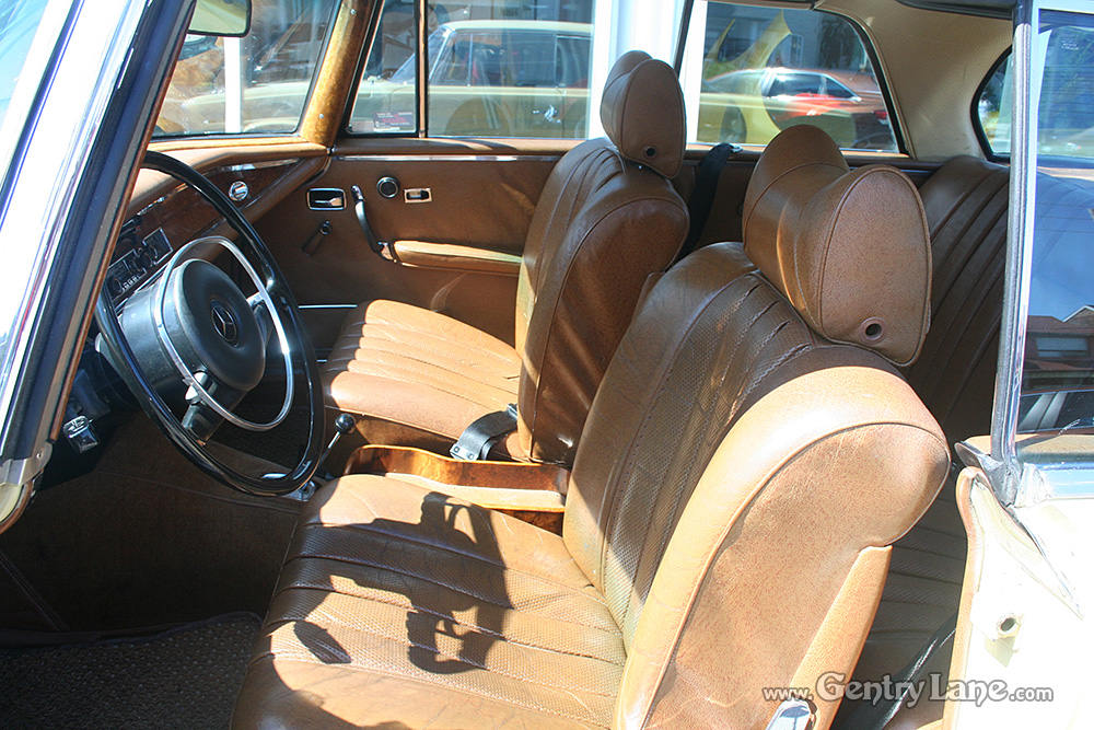 1969 Mercedes-Benz 280SE Coupe. The exterior is Sand Beige with a Brown leather interior. Automatic transmission. 6 cylinder engine. 94,280 miles. RWD. Radio. Air Conditioning.