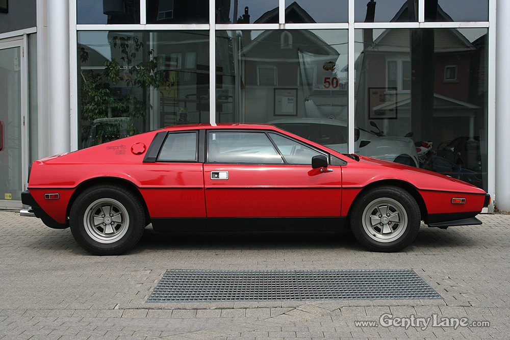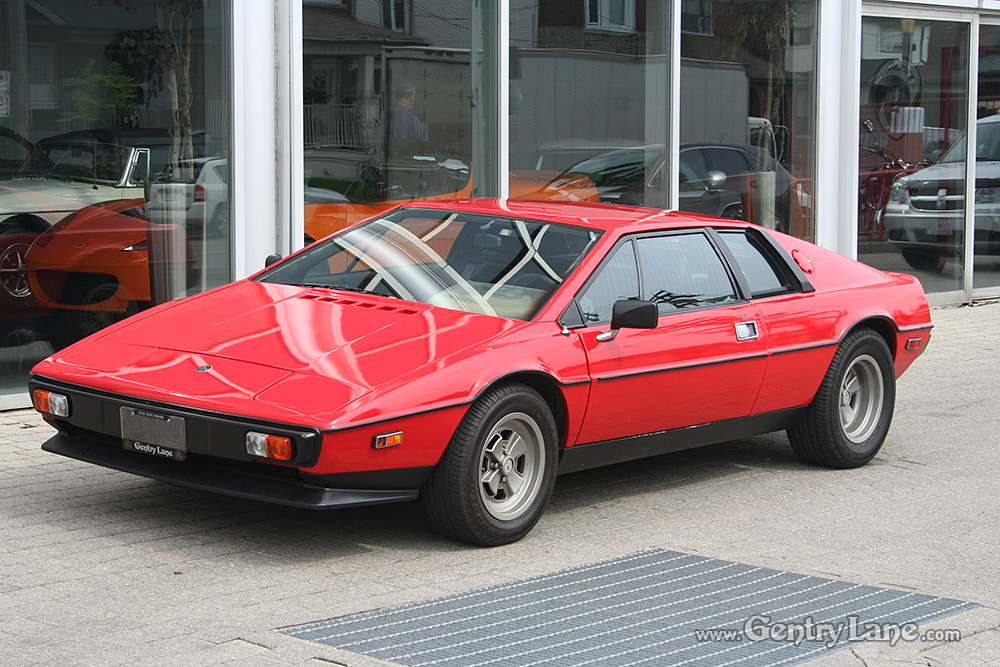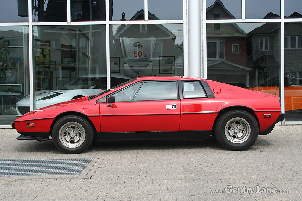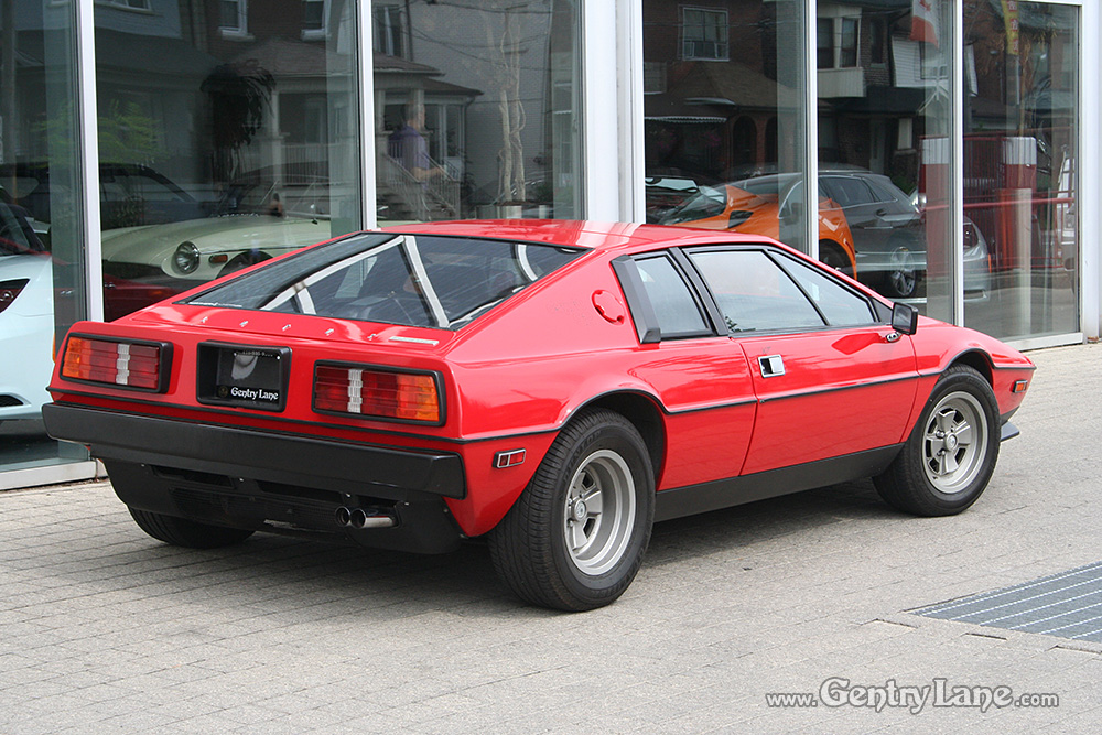 1978 Lotus Esprit S2 with 55,000 miles. The exterior is Red with a Black interior. 5 Speed manual transmission with a V4 engine. Options include A/C and power windows.