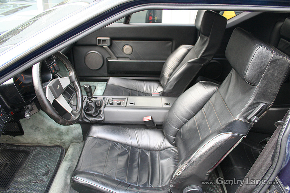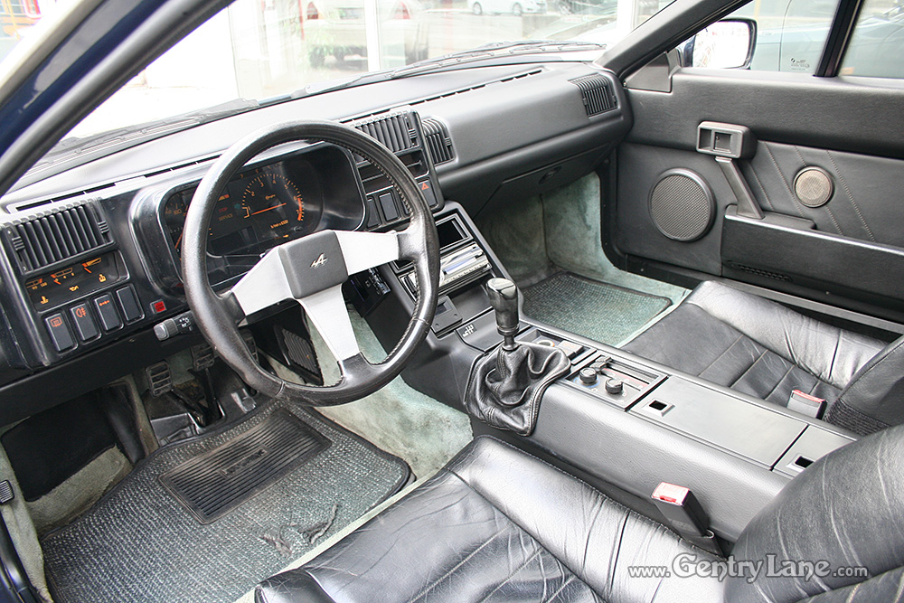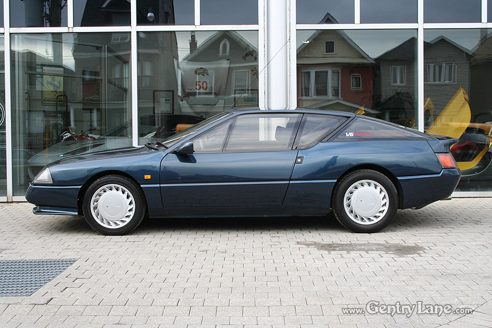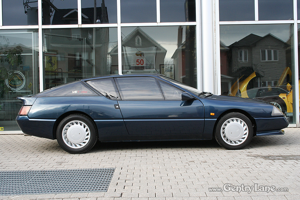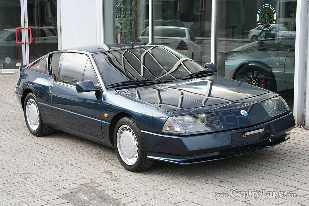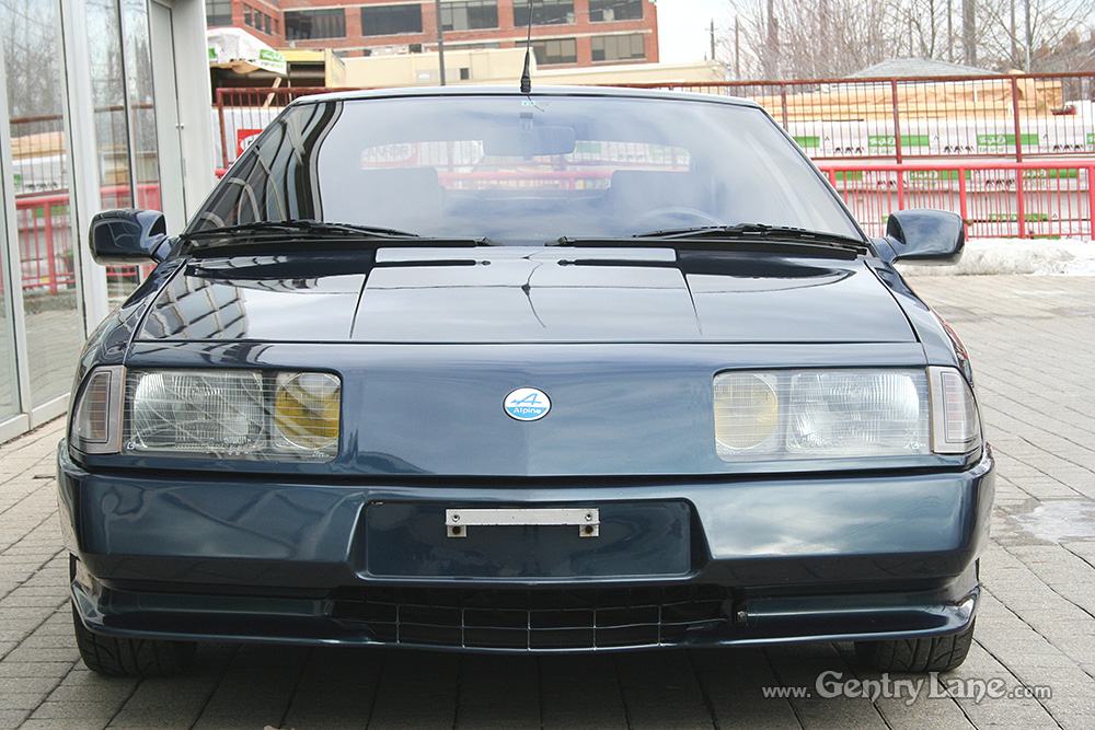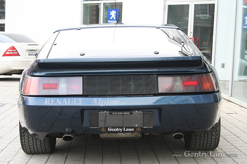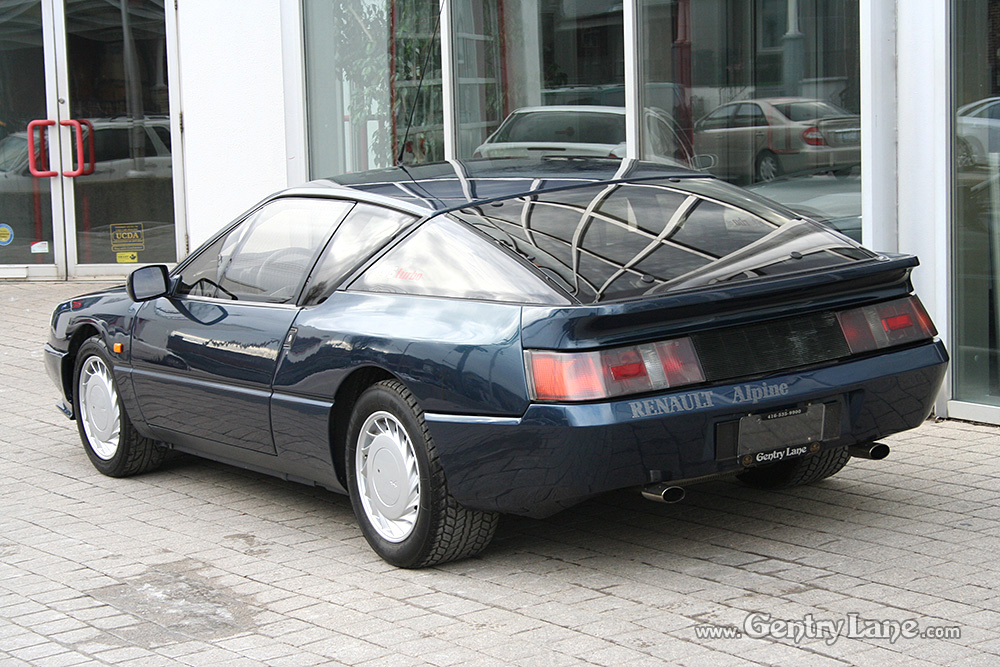 1990 Renault Alpine. The exterior is Dark Blue with a Black leather interior. 5 speed manual transmission. 28,000 km. 2500cc. V6 turbo rear engine. RWD.