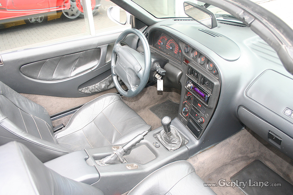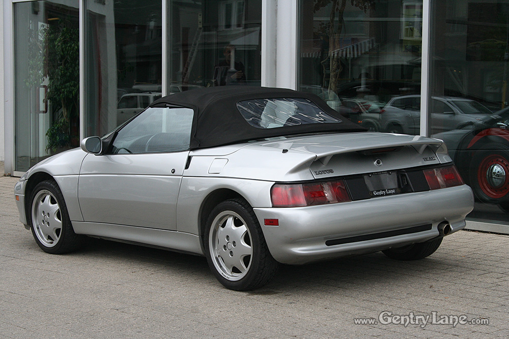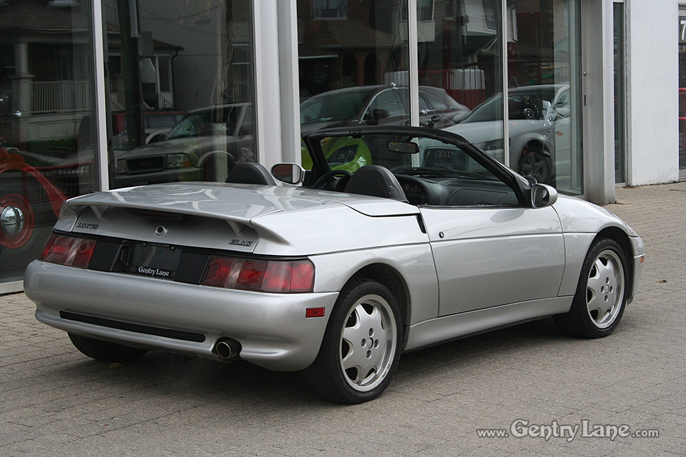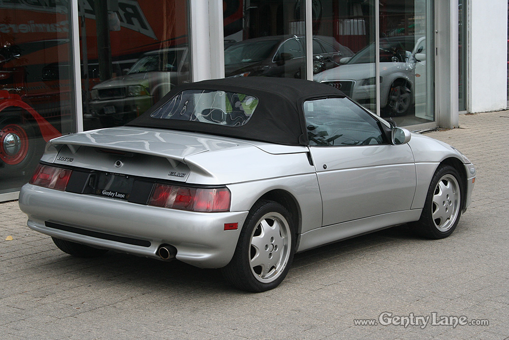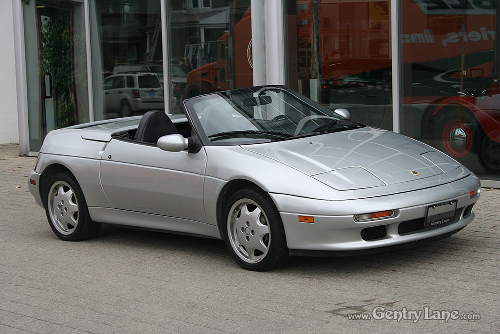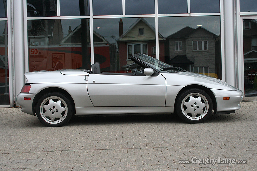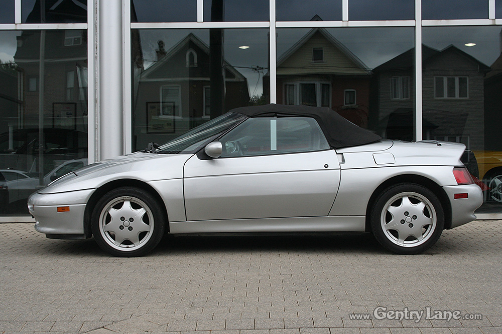 1991 Lotus Elan Convertible. The exterior is Silver with a Black leather interior. Black soft top. 5 Speed manual transmission. Showing 76,824 km. FWD. 4 cylinder engine. Options include power windows, power mirrors, radio, CD player and A/C.