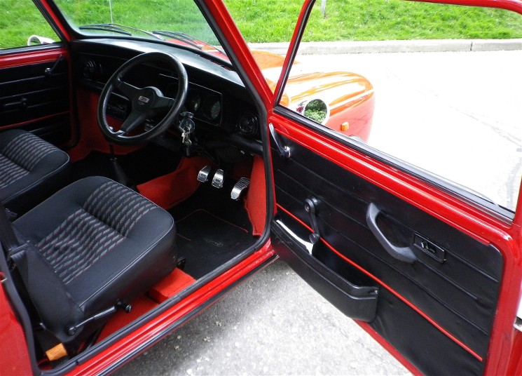 Retro-Cool RHD 1993 Rover Mini Mk1. The engine is a Rover 1.3L Fuel injected 4 Cylinder with a 4 Speed manual Transmission. This cool little Rover Mini is finished in a gorgeous red with Cooper Decals, Mini Light Wheels and Union Jack painted roof. The interior like the exterior is in great overall condition and shows very well. This gorgeous RHD Mini looks great and drives amazing! With only 52,784 original miles this cool little Mini can be enjoyed for years to come!