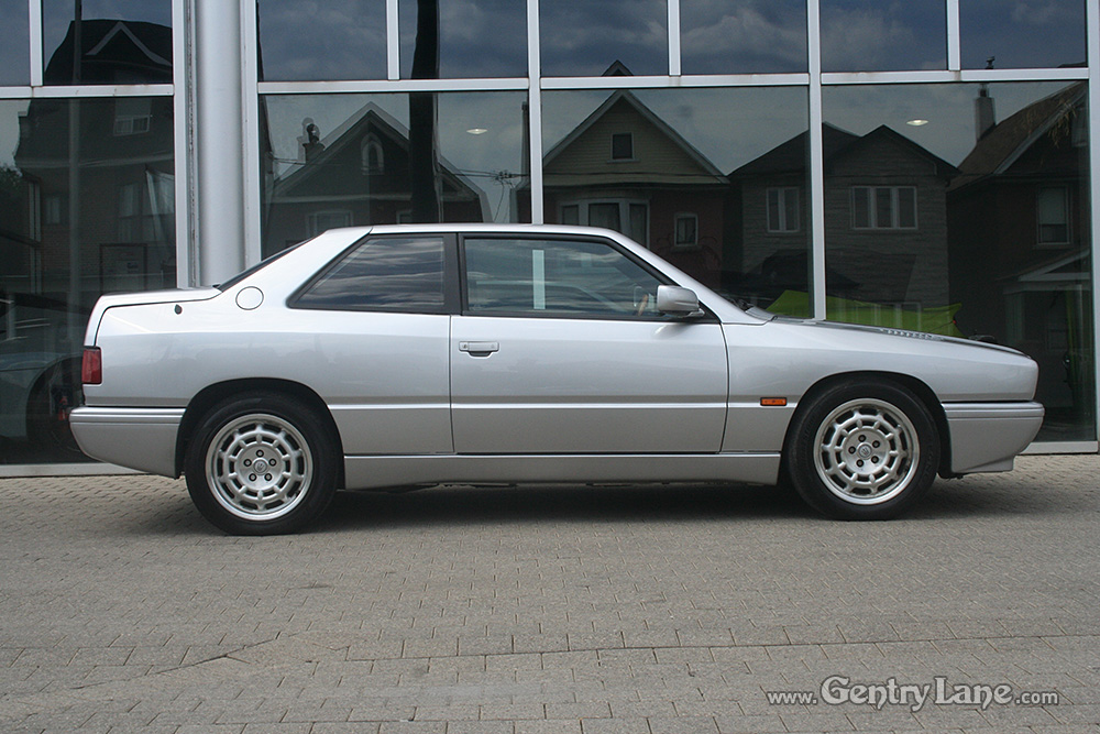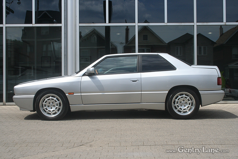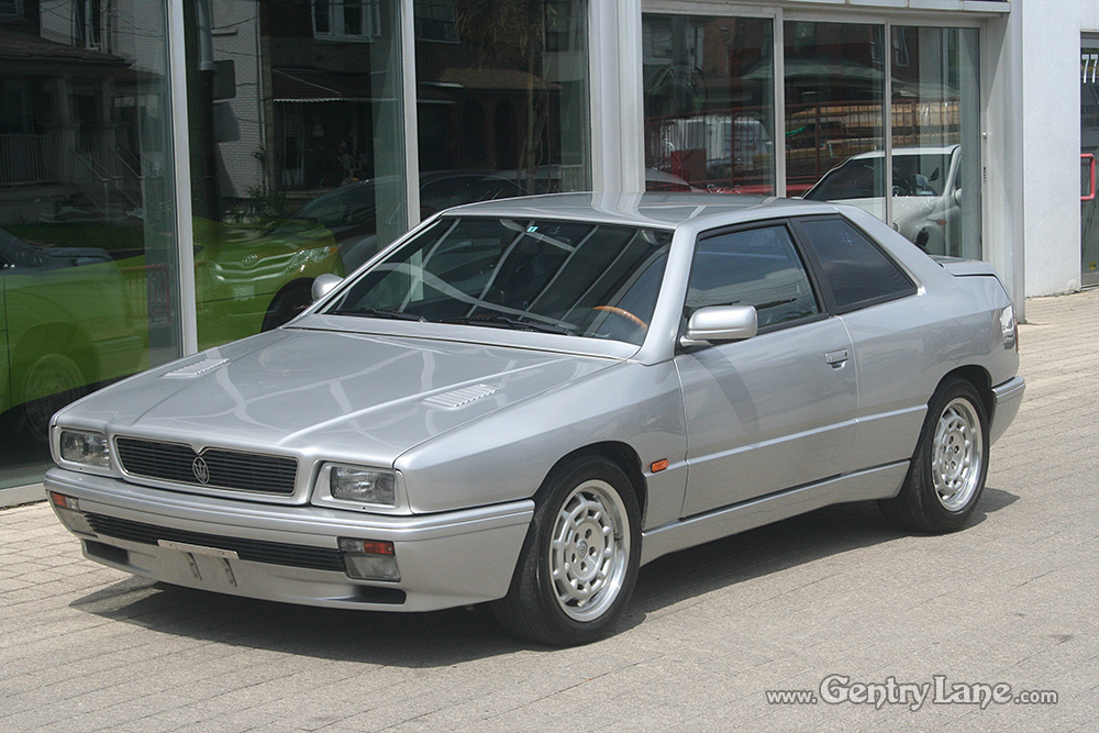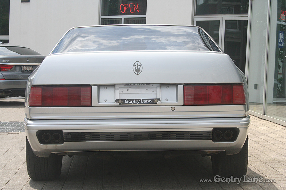 1997 Maserati Ghibli. The exterior is Silver with a Black leather interior. Automatic. 68,000 km. RWD. V-6 2800cc engine. Options include power windows, power mirrors, power seats, radio, and A/C.