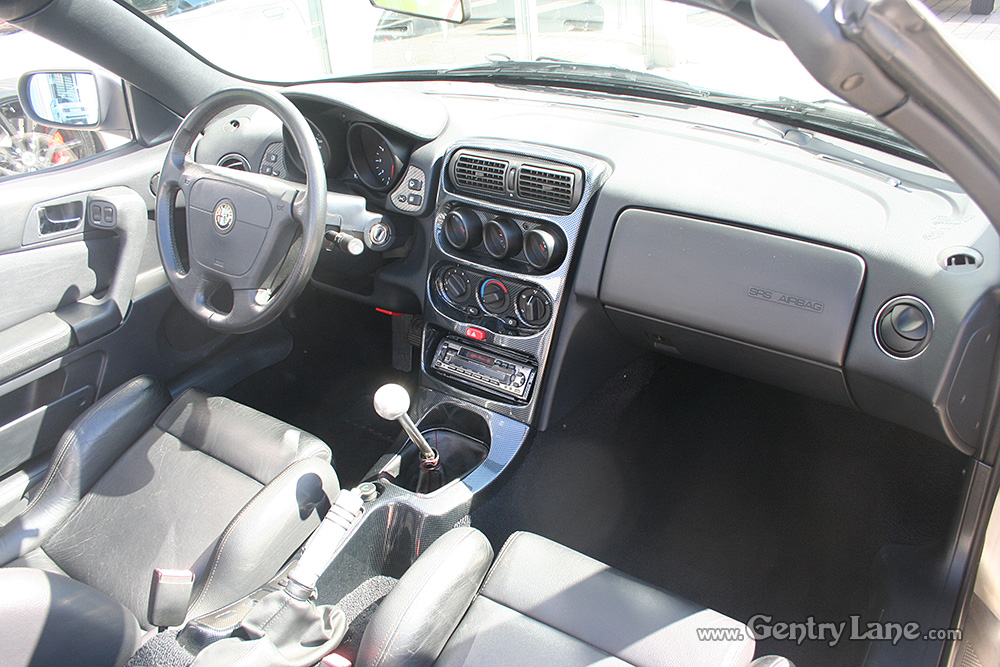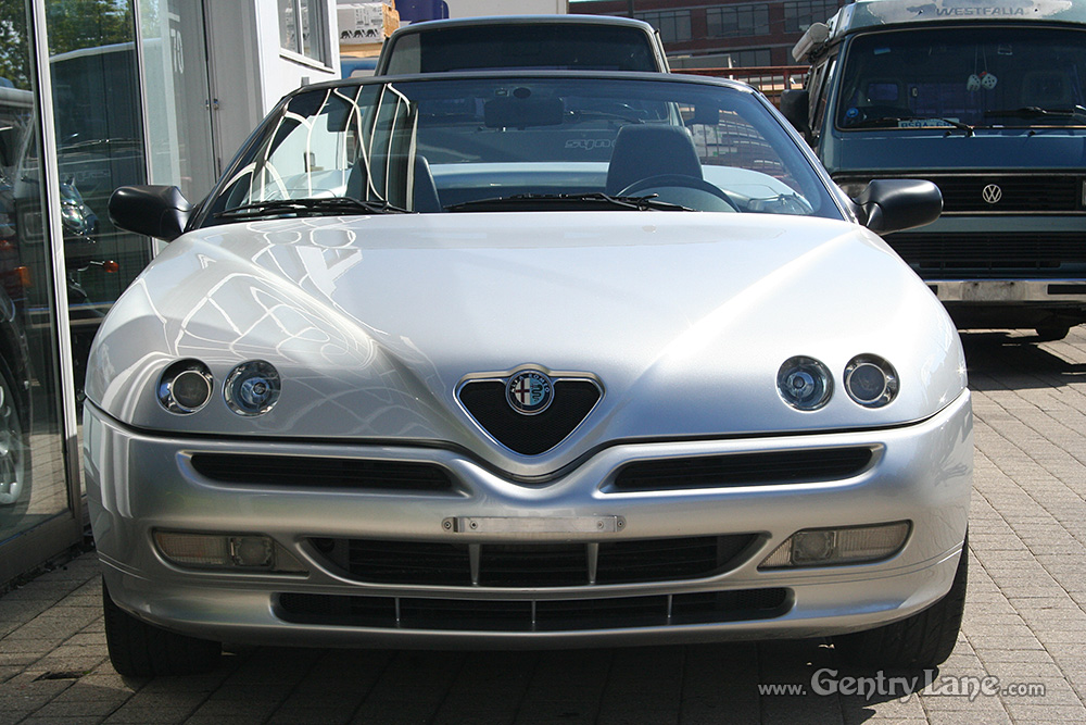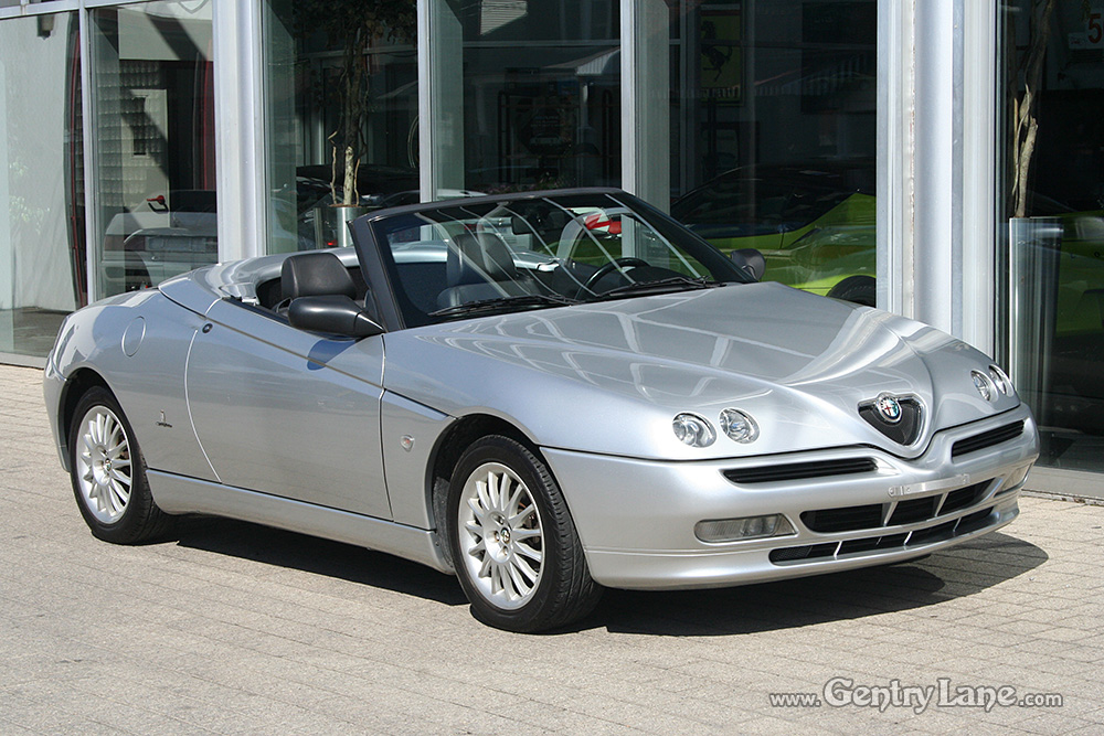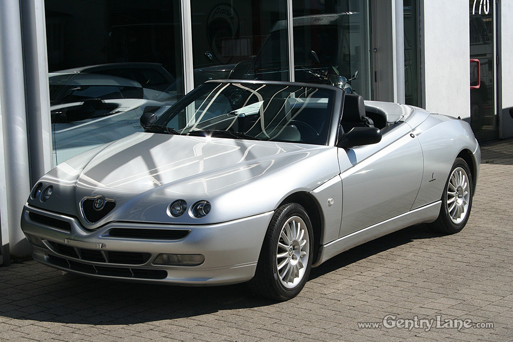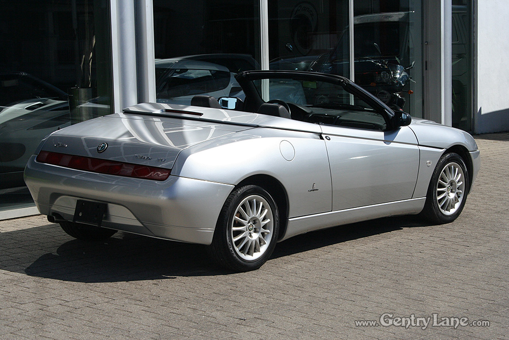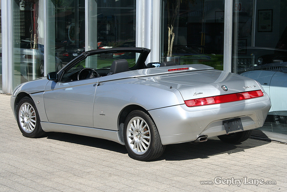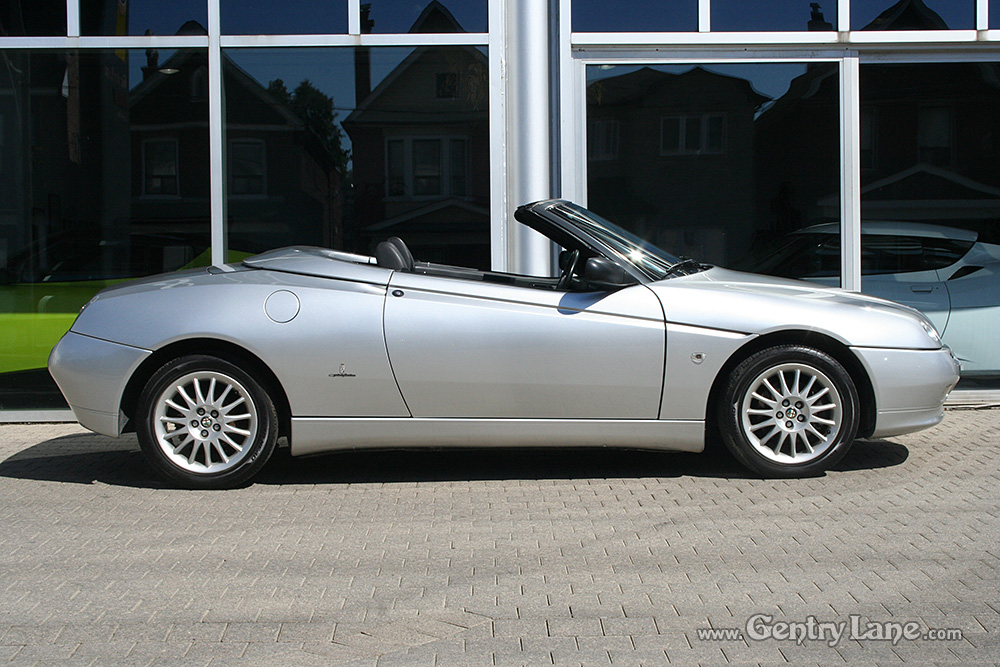 1998 Alfa Romeo Spider Convertible. The exterior is Silver with a Black leather interior. Black soft top. 5 Speed manual transmission. 99,000 km. FWD. 4 cylinder engine. Options include power windows, power mirrors, radio and A/C.