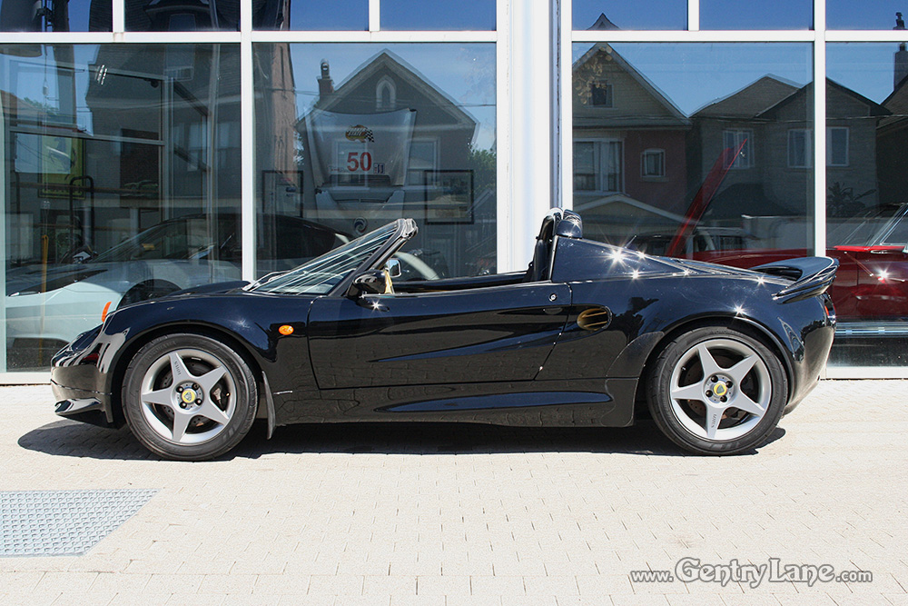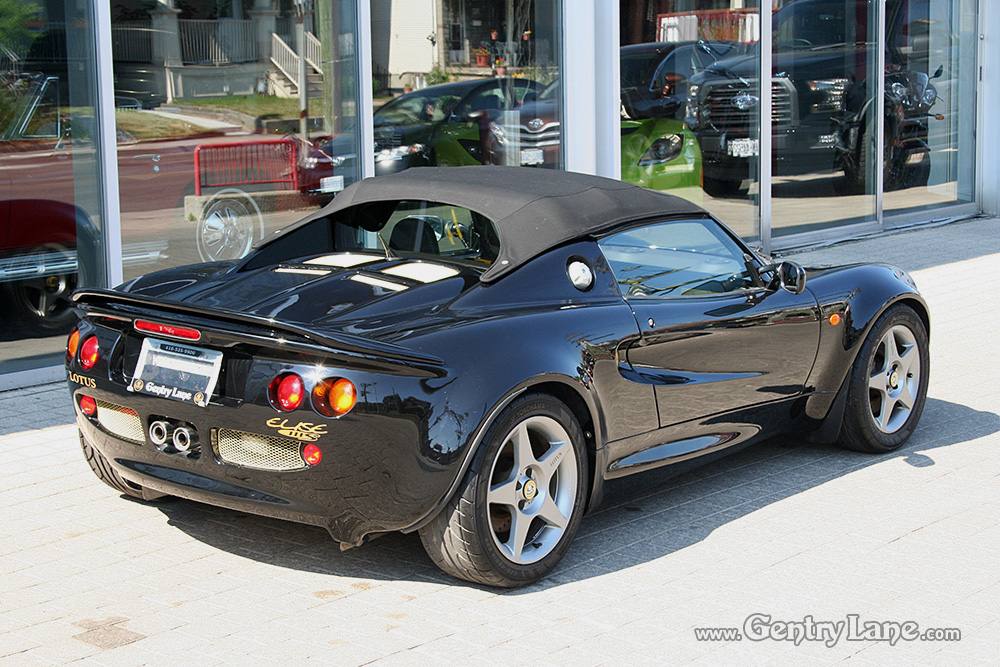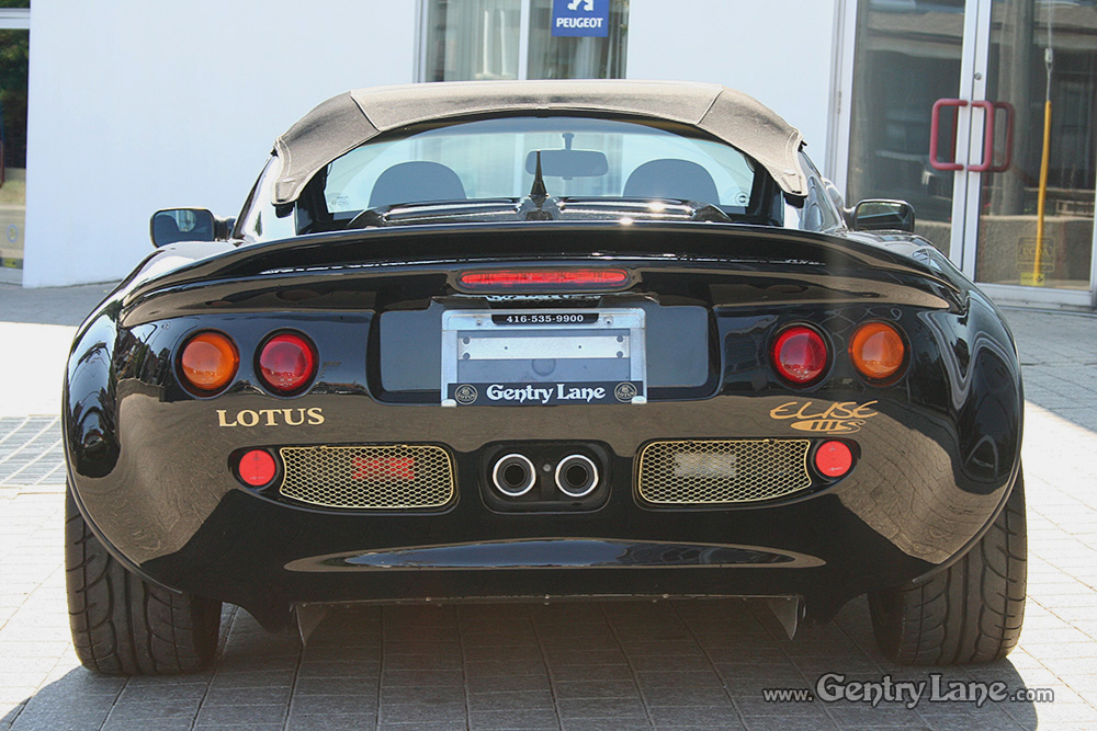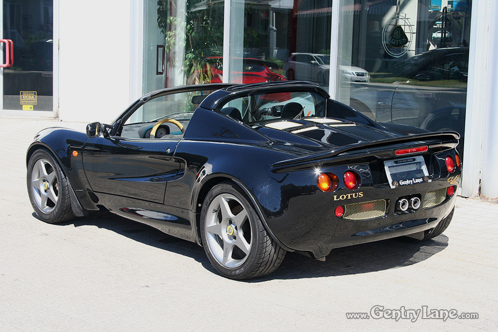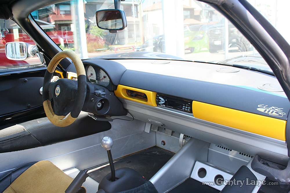 2001 Lotus Elise 111S. The exterior is Black with a Yellow and Black interior. Black soft top. 5 speed manual transmission. 12,200 km. Inline-four, 1.8L engine. JPS Type 79. CD player and Radio.