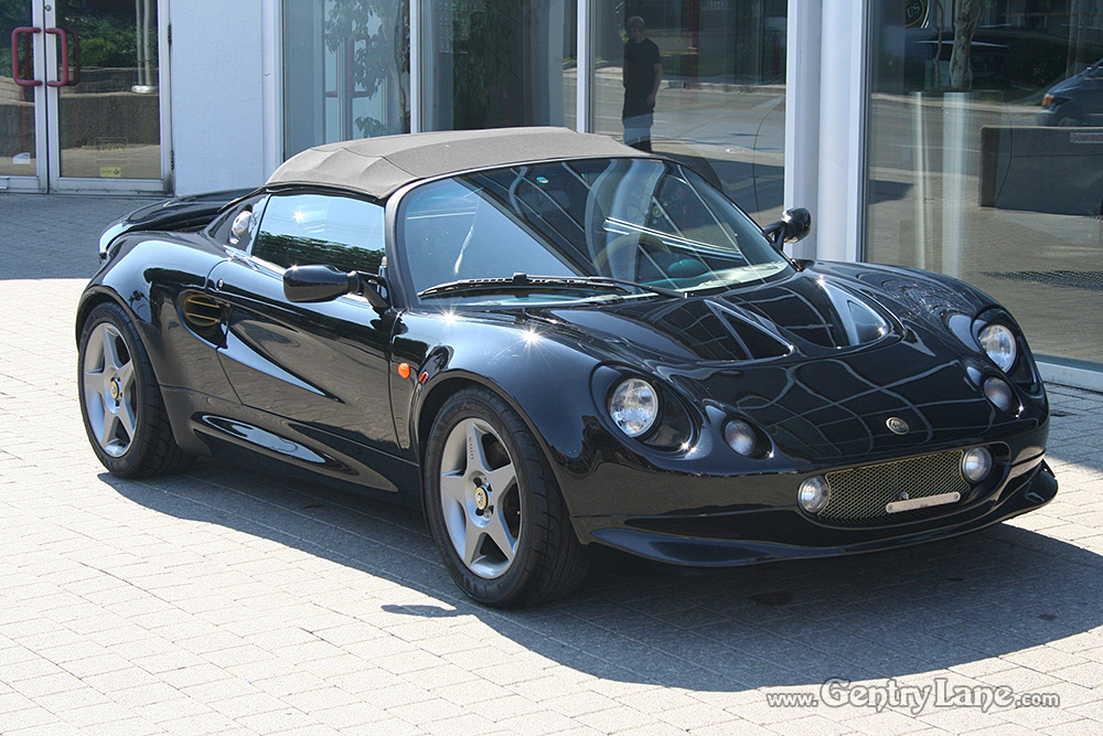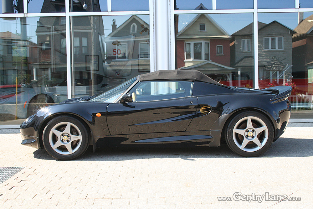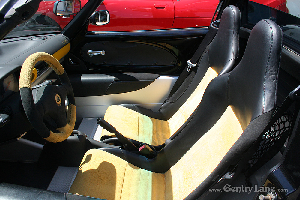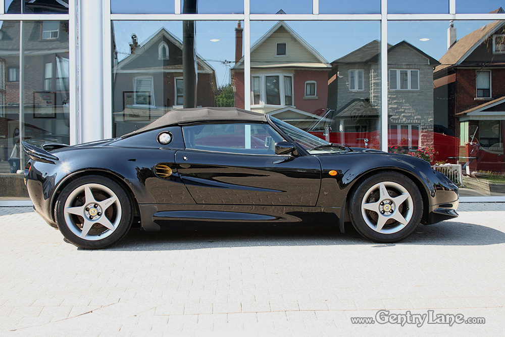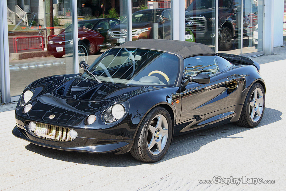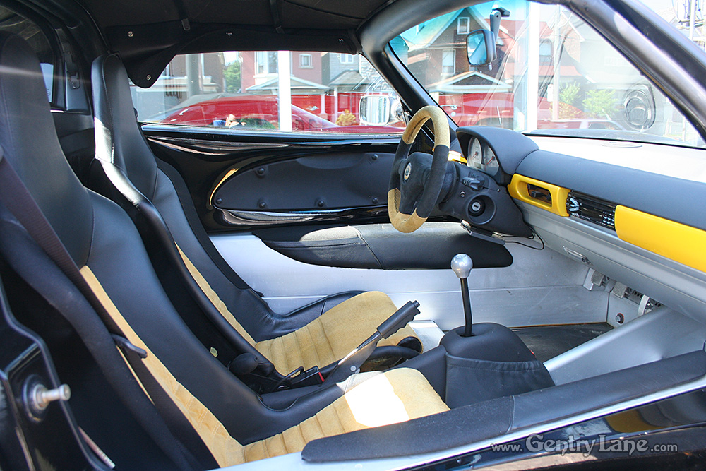 2001 Lotus Elise 111S. The exterior is Black with a Yellow and Black interior. Black soft top. 5 speed manual transmission. 12,200 km. Inline-four, 1.8L engine. JPS Type 79. CD player and Radio.