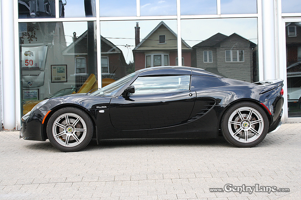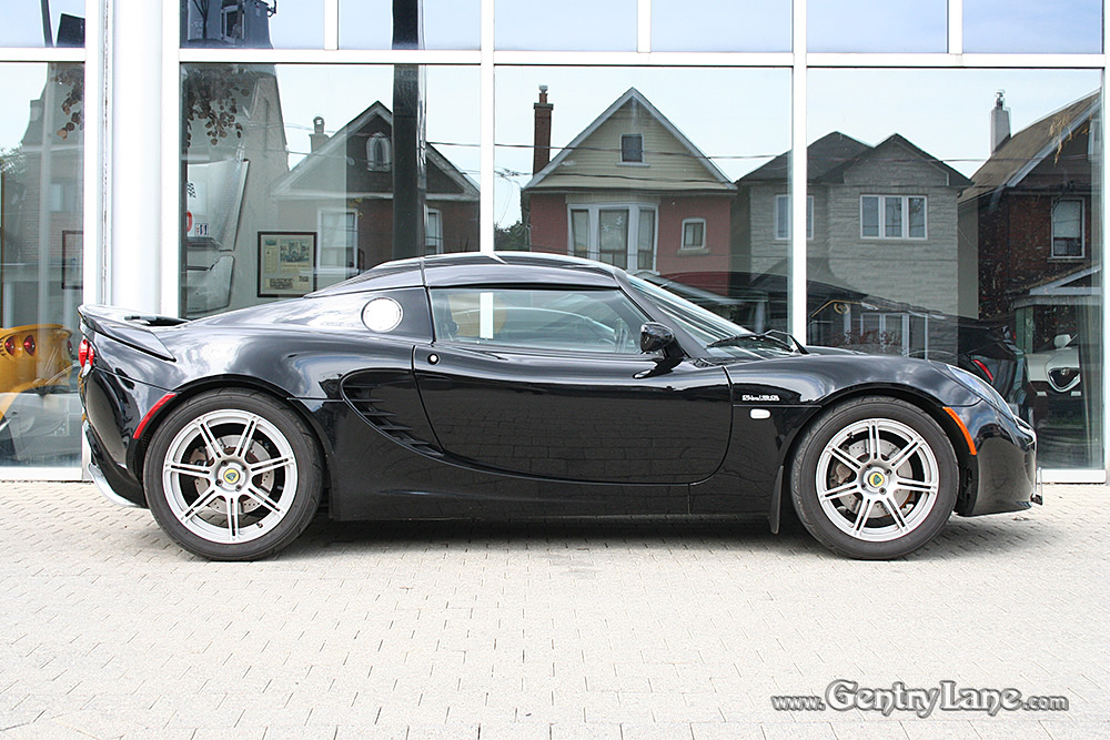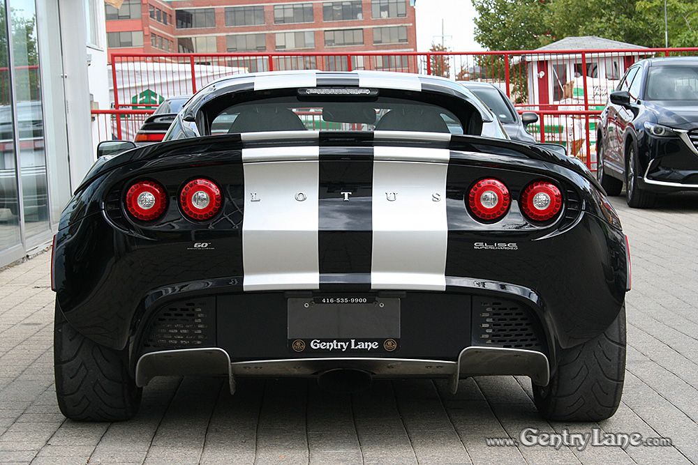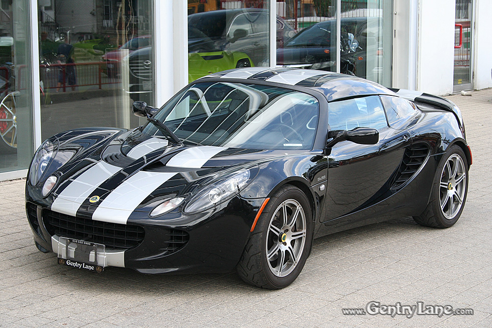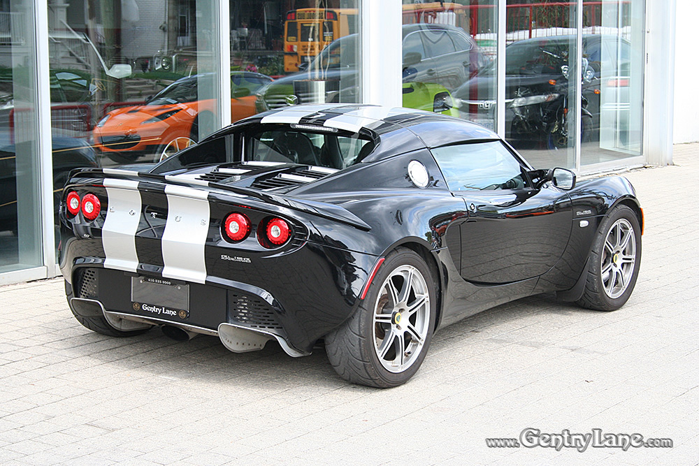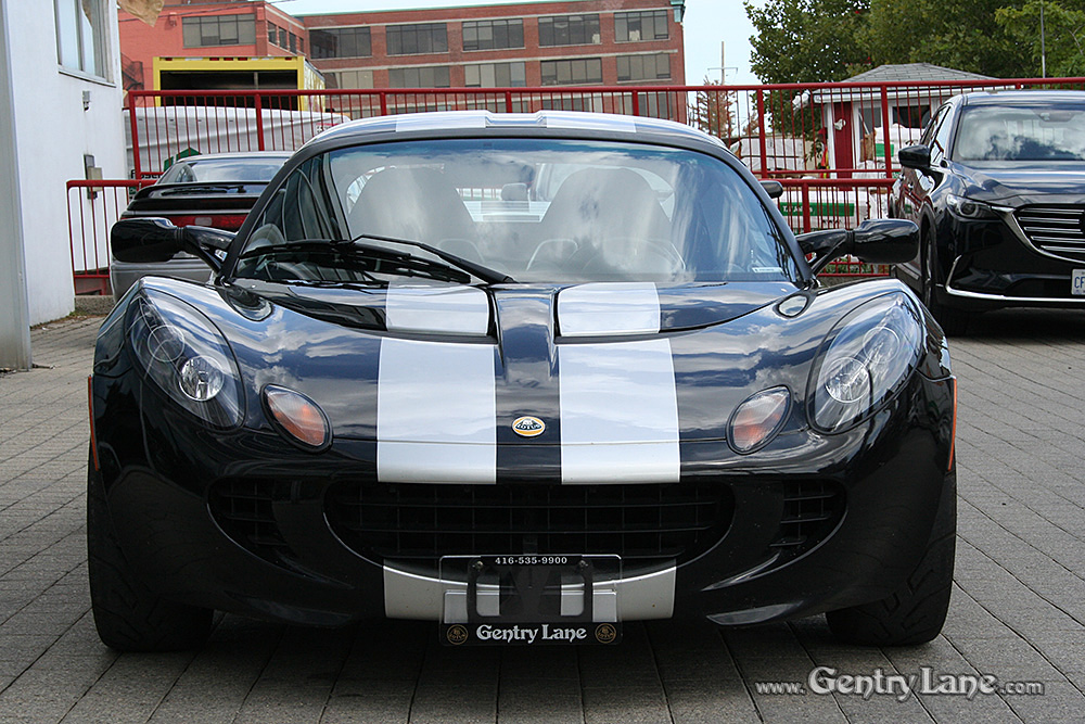 Stunning Phantom Black 2008 Lotus Elise with Silver Stripes. Options include: 6 Speed manual transmission, 1.8 Liter 4-Cylinder, engine start button and A/C. This example comes equipped with Track Pack, Sport Pack, Touring Pack, Hard Top, Black Leather Seats, Power Windows and Stereo System. In excellent condition, this Elise has 19,158 kms. Gorgeous example!