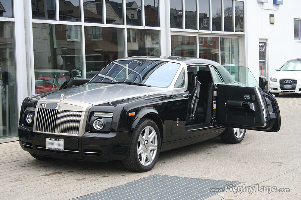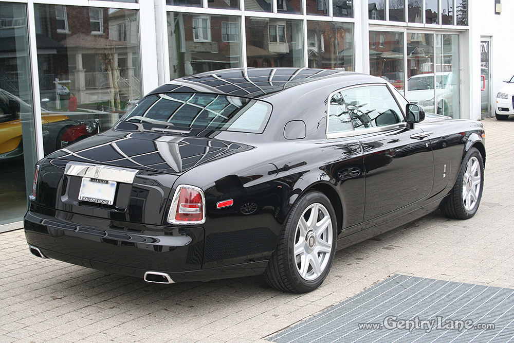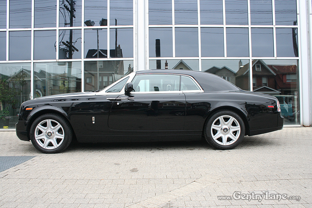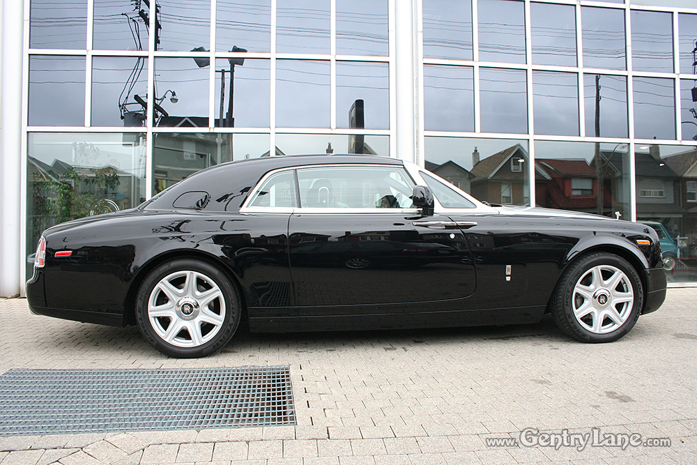 The Rolls-Royce Phantom Coupé is a British handmade (except chassis) luxury car manufactured by Rolls-Royce Motor Cars that debuted at the 2008 Geneva International Auto Show in Geneva, Switzerland, on 6 March 2008. The platform is based on the 2003 Rolls-Royce Phantom and has styling heavily derived from the Rolls-Royce 100EX, a concept car unveiled to celebrate the company’s centennial in 2004. Its interior includes leather and wood veneer. There is a button to close the “coach doors” (suicide doors). The Phantom Coupe has the same 6.75 litre V12 as found in the other Phantom models, developing 338 kW (453 bhp) of power and 720 N·m (531 lb·ft) of torque.