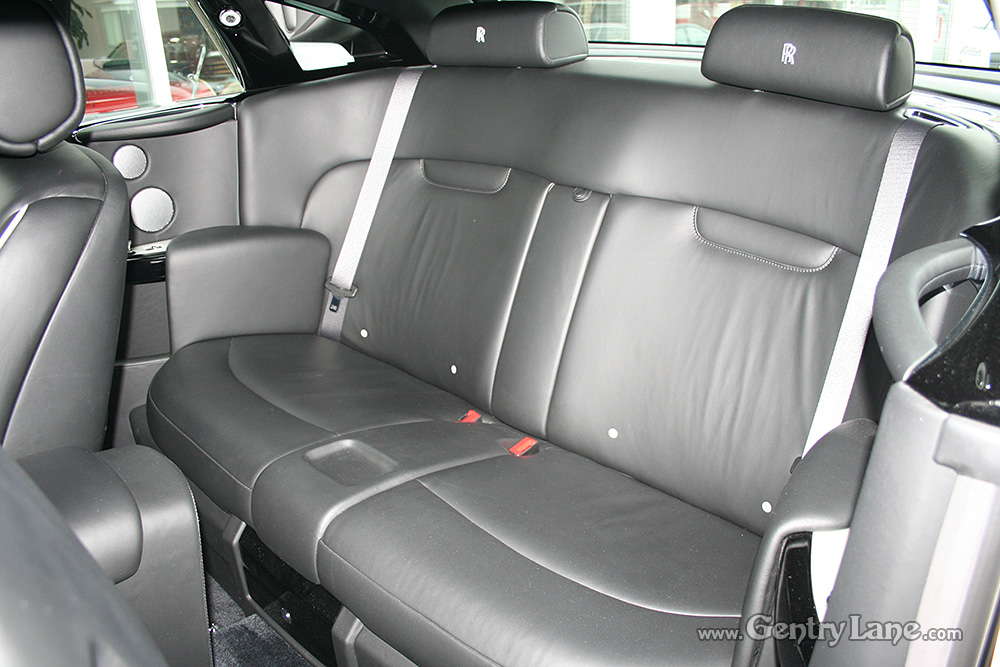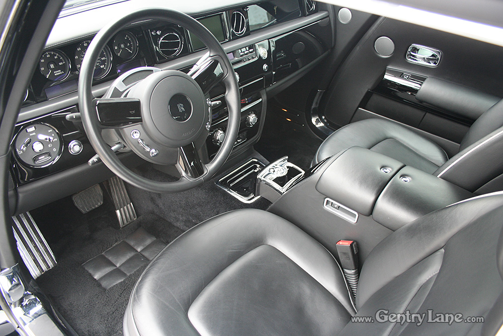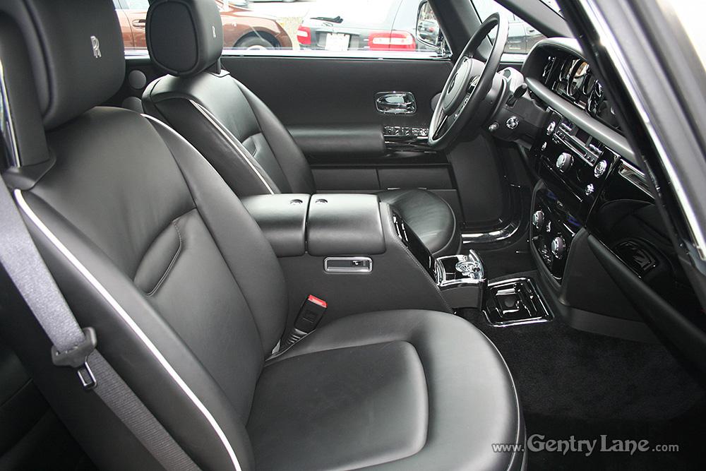 2011 Rolls-Royce Phantom Coupe. The exteroir is Black with a Black leather interior. Automatic transmission. 13,399 km. V12 6.75L Engine. RWD. Options include starlight headliner (lights up the roof with hundreds of lights), navigation, reverse camera, power windows, power locks, power heated mirrors, power heated seats, 16 total speakers, auxiliary audio input and USB with external media control, CD player, AM/FM stereo and A/C.